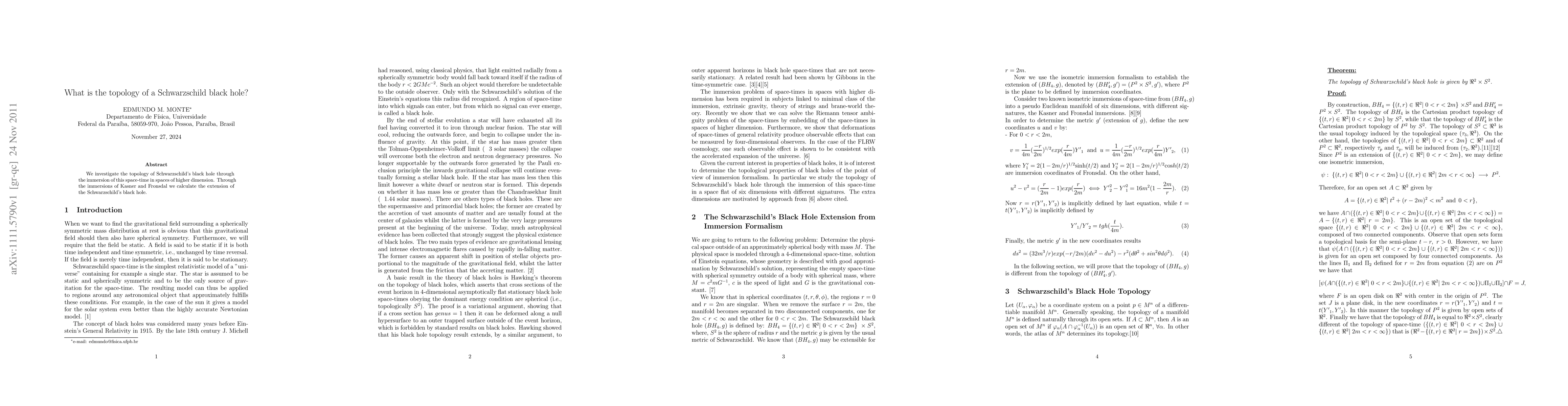 We investigate the topology of Schwarzschild's black hole through the immersion of this space-time in spaces of higher dimension. Through the immersions of Kasner and Fronsdal we calculate the extension of the Schwarzschild's black hole.