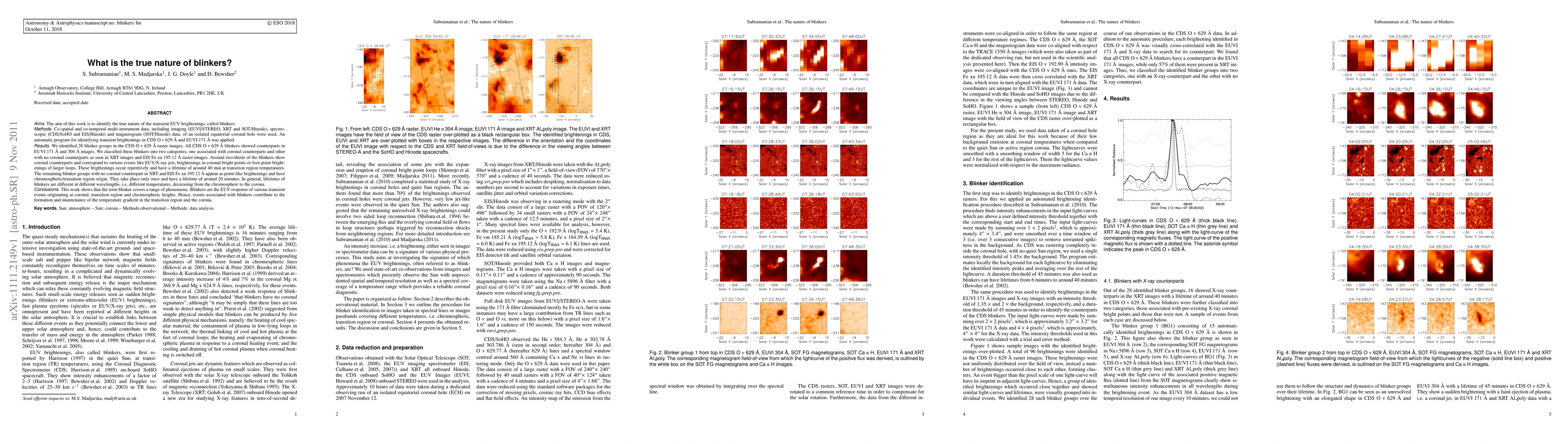 The aim of this work is to identify the true nature of the transient EUV brightenings, called blinkers. Co-spatial and co-temporal multi-instrument data, including imaging (EUVI/STEREO, XRT and SOT/Hinode), spectroscopic (CDS/SoHO and EIS/Hinode) and magnetogram (SOT/Hinode) data, of an isolated equatorial coronal hole were used. An automatic program for identifying transient brightenings in CDS O V 629 A and EUVI 171 A was applied. We identified 28 blinker groups in the CDS O V 629 A raster images. All CDS O V 629 A blinkers showed counterparts in EUVI 171 A and 304 A images. We classified these blinkers into two categories, one associated with coronal counterparts and other with no coronal counterparts as seen in XRT images and EIS Fe XII 195.12 A raster images. Around two-thirds of the blinkers show coronal counterparts and correspond to various events like EUV/X-ray jets, brightenings in coronal bright points or foot-point brightenings of larger loops. These brightenings occur repetitively and have a lifetime of around 40 min at transition region temperatures. The remaining blinker groups with no coronal counterpart in XRT and EIS Fe XII 195.12 A appear as point-like brightenings and have chromospheric/transition region origin. They take place only once and have a lifetime of around 20 minutes. In general, lifetimes of blinkers are different at different wavelengths, i.e. different temperatures, decreasing from the chromosphere to the corona. This work shows that the term blinker covers a range of phenomena. Blinkers are the EUV response of various transient events originating at coronal, transition region and chromospheric heights. Hence, events associated with blinkers contribute to the formation and maintenance of the temperature gradient in the transition region and the corona.
