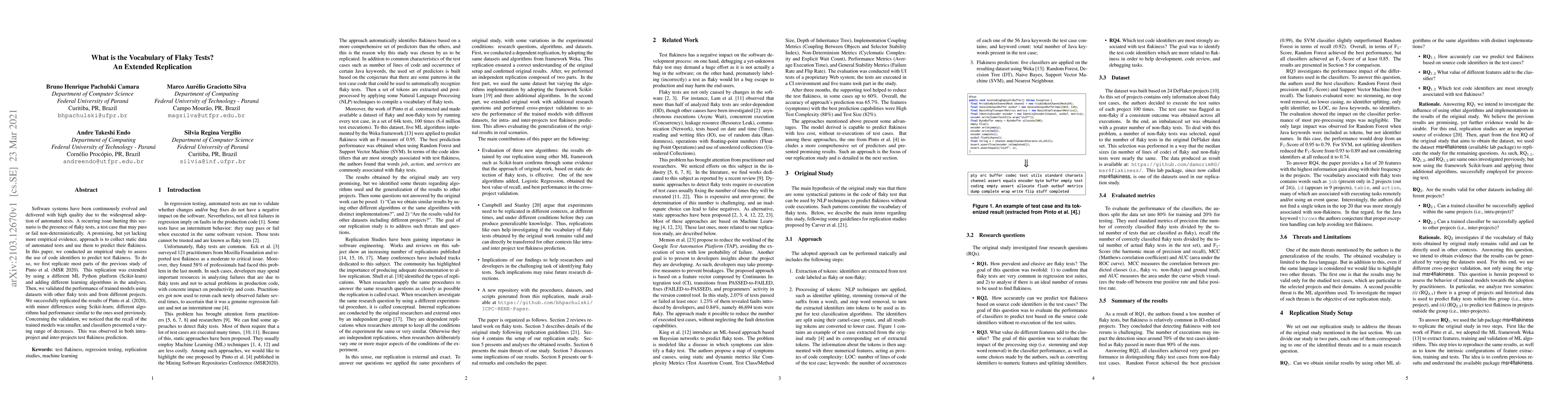 Software systems have been continuously evolved and delivered with high quality due to the widespread adoption of automated tests. A recurring issue hurting this scenario is the presence of flaky tests, a test case that may pass or fail non-deterministically. A promising, but yet lacking more empirical evidence, approach is to collect static data of automated tests and use them to predict their flakiness. In this paper, we conducted an empirical study to assess the use of code identifiers to predict test flakiness. To do so, we first replicate most parts of the previous study of Pinto~et~al.~(MSR~2020). This replication was extended by using a different ML Python platform (Scikit-learn) and adding different learning algorithms in the analyses. Then, we validated the performance of trained models using datasets with other flaky tests and from different projects. We successfully replicated the results of Pinto~et~al.~(2020), with minor differences using Scikit-learn; different algorithms had performance similar to the ones used previously. Concerning the validation, we noticed that the recall of the trained models was smaller, and classifiers presented a varying range of decreases. This was observed in both intra-project and inter-projects test flakiness prediction.