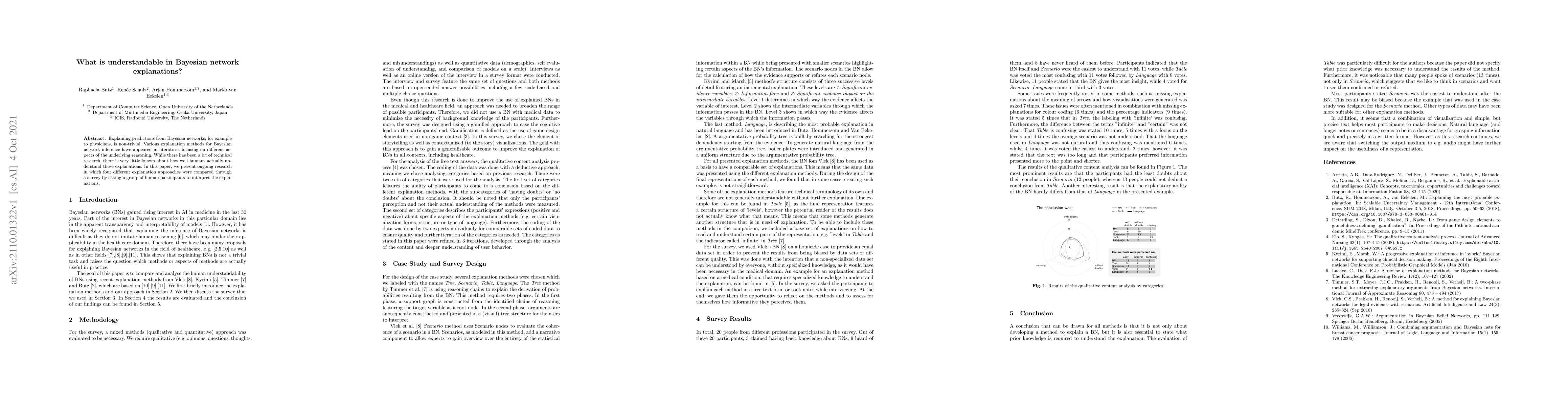 A study found that humans have difficulty understanding explanations from Bayesian networks, with only 1 in 10 participants correctly interpreting the most straightforward explanation method. The results highlight a need for more intuitive and user-friendly explanation approaches for non-experts to effectively communicate complex probabilistic models.