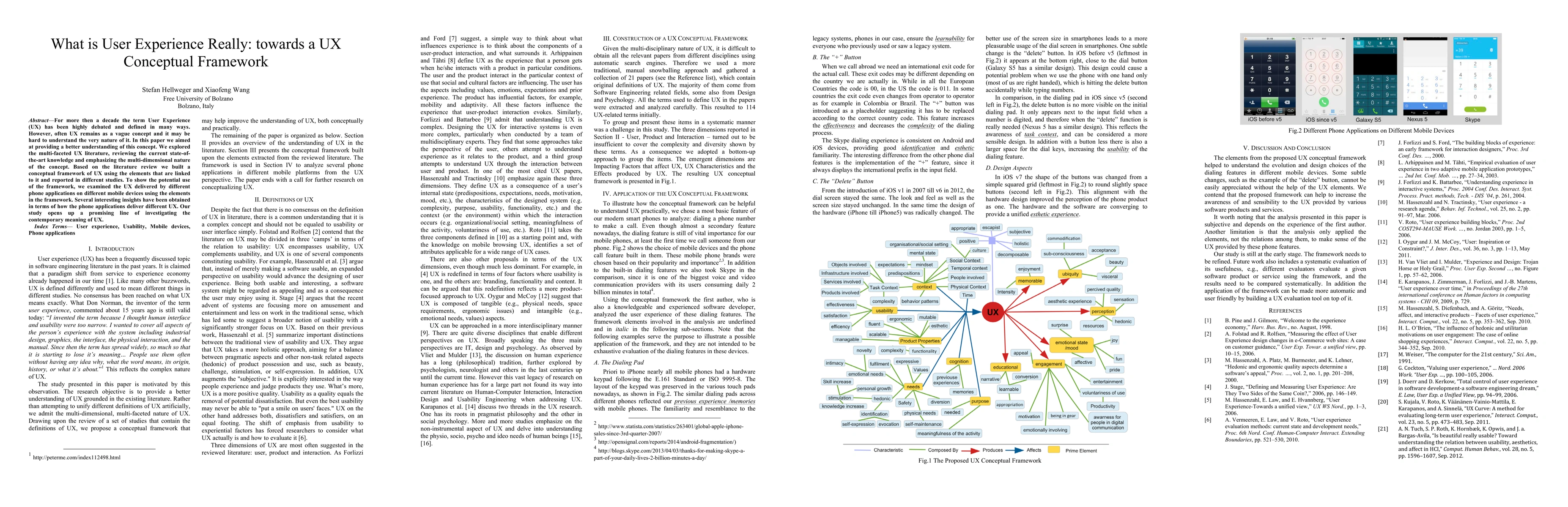 This paper aims to clarify the concept of User Experience (UX) by developing a conceptual framework that highlights its multi-dimensional nature. By examining phone applications on different mobile devices, researchers obtained interesting insights into how UX is delivered differently across various platforms.