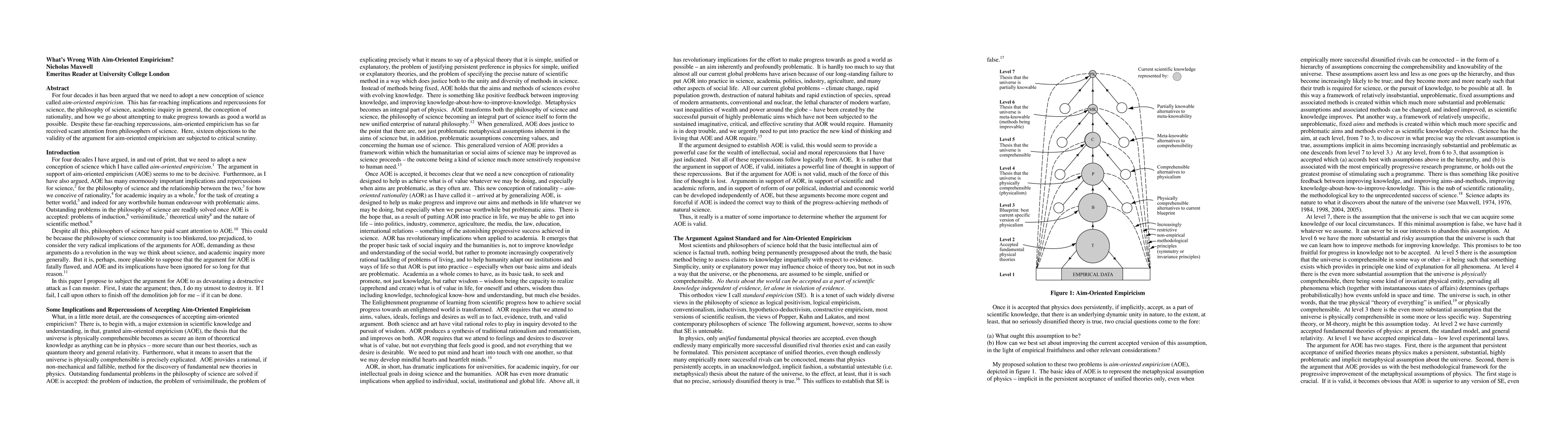 For four decades it has been argued that we need to adopt a new conception of science called aim-oriented empiricism. This has far-reaching implications and repercussions for science, the philosophy of science, academic inquiry in general, the conception of rationality, and how we go about attempting to make progress towards as good a world as possible. Despite these far-reaching repercussions, aim-oriented empiricism has so far received scant attention from philosophers of science. Here, sixteen objections to the validity of the argument for aim-oriented empiricism are subjected to critical scrutiny.