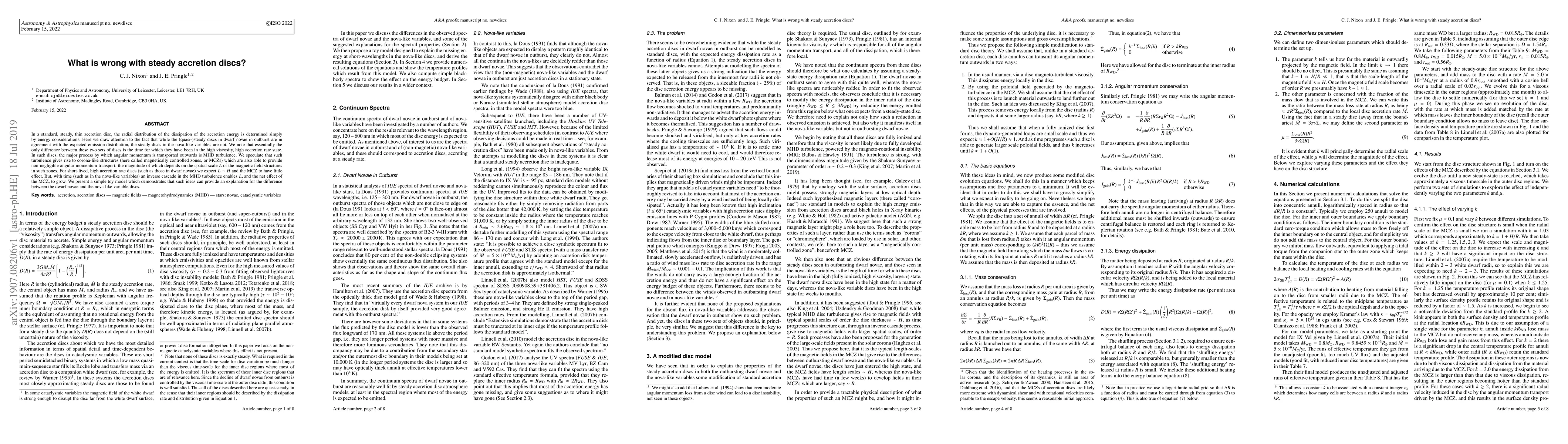 In a standard, steady, thin accretion disc, the radial distribution of the dissipation of the accretion energy is determined simply by energy considerations. Here we draw attention to the fact that while the (quasi-)steady discs in dwarf novae in outburst are in agreement with the expected emission distribution, the steady discs in the nova-like variables are not. We note that essentially the only difference between these two sets of discs is the time for which they have been in the high viscosity, high accretion rate state. In such discs, the major process by which angular momentum is transported outwards is MHD turbulence. We speculate that such turbulence gives rise to corona-like structures (here called magnetically controlled zones, or MCZs) which are also able to provide non-negligible angular momentum transport, the magnitude of which depends on the spatial scale $L$ of the magnetic field structures in such zones. For short-lived, high accretion rate discs (such as those in dwarf novae) we expect $L \sim H$ and the MCZ to have little effect. But, with time (such as in the nova-like variables) an inverse cascade in the MHD turbulence enables $L$, and the net effect of the MCZ, to grow. We present a simple toy model which demonstrates that such ideas can provide an explanation for the difference between the dwarf novae and the nova-like variable discs.