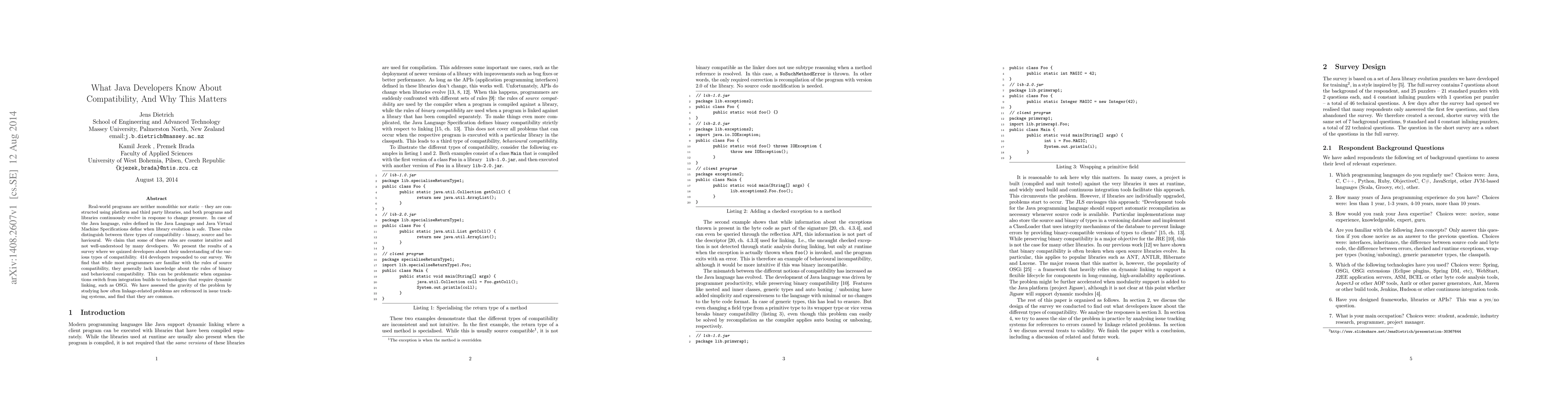This study surveys 414 Java developers to assess their understanding of Java compatibility rules, revealing that while most are familiar with source compatibility, many lack knowledge about binary and behavioural compatibility. This gap can lead to integration issues, especially when adopting dynamic linking technologies like OSGi.