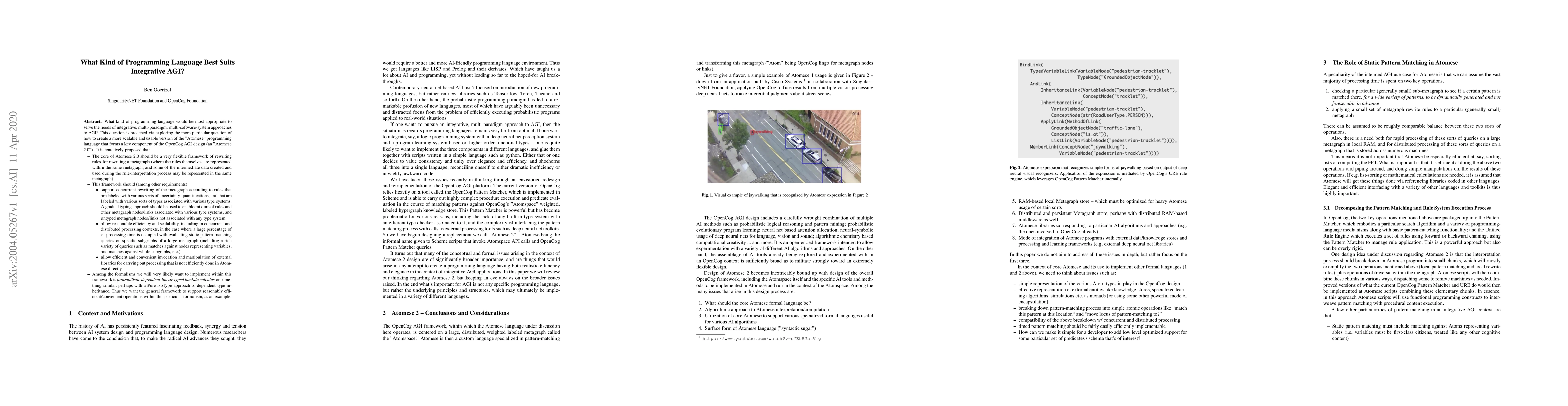 What kind of programming language would be most appropriate to serve the needs of integrative, multi-paradigm, multi-software-system approaches to AGI? This question is broached via exploring the more particular question of how to create a more scalable and usable version of the "Atomese" programming language that forms a key component of the OpenCog AGI design (an "Atomese 2.0") . It is tentatively proposed that the core of Atomese 2.0 should be a very flexible framework of rewriting rules for rewriting a metagraph (where the rules themselves are represented within the same metagraph, and some of the intermediate data created and used during the rule-interpretation process may be represented in the same metagraph). This framework should support concurrent rewriting of the metagraph according to rules that are labeled with various sorts of uncertainty-quantifications, and that are labeled with various sorts of types associated with various type systems. A gradual typing approach should be used to enable mixture of rules and other metagraph nodes/links associated with various type systems, and untyped metagraph nodes/links not associated with any type system. This must be done in a way that allows reasonable efficiency and scalability, including in concurrent and distributed processing contexts, in the case where a large percentage of of processing time is occupied with evaluating static pattern-matching queries on specific subgraphs of a large metagraph (including a rich variety of queries such as matches against nodes representing variables, and matches against whole subgraphs, etc.).