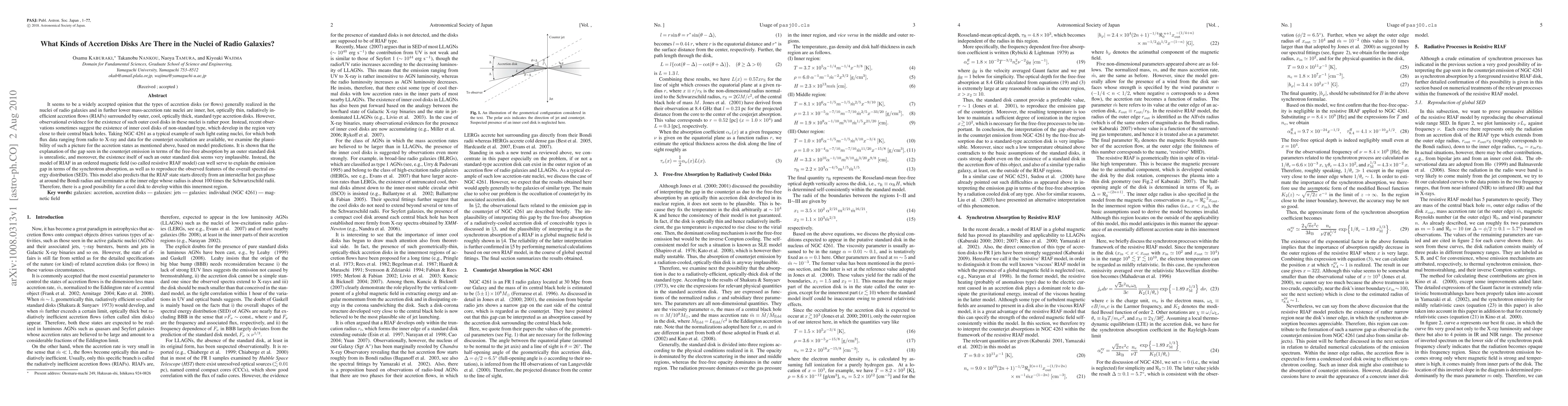 It seems to be a widely accepted opinion that the types of accretion disks (or flows) generally realized in the nuclei of radio galaxies and in further lower mass-accretion rate nuclei are inner, hot, optically thin, radiatively inefficient accretion flows (RIAFs) surrounded by outer, cool, optically thick, standard type accretion disks. However, observational evidence for the existence of such outer cool disks in these nuclei is rather poor. Instead, recent observations sometimes suggest the existence of inner cool disks of non-standard type, which develop in the region very close to their central black holes. Taking NGC 4261 as a typical example of such light eating nuclei, for which both flux data ranging from radio to X-ray and data for the counterjet occultation are available, we examine the plausibility of such a picture for the accretion states as mentioned above, based on model predictions. It is shown that the explanation of the gap seen in the counterjet emission in terms of the free-free absorption by an outer standard disk is unrealistic, and moreover, the existence itself of such an outer standard disk seems very implausible. Instead, the model of RIAF in an ordered magnetic field (so called resistive RIAF model) can well serve to explain the emission gap in terms of the synchrotron absorption, as well as to reproduce the observed features of the overall spectral energy distribution (SED). This model also predicts that the RIAF state starts directly from an interstellar hot gas phase at around the Bondi radius and terminates at the inner edge whose radius is about 100 times the Schwartzschild radii. Therefore, there is a good possibility for a cool disk to develop within this innermost region.