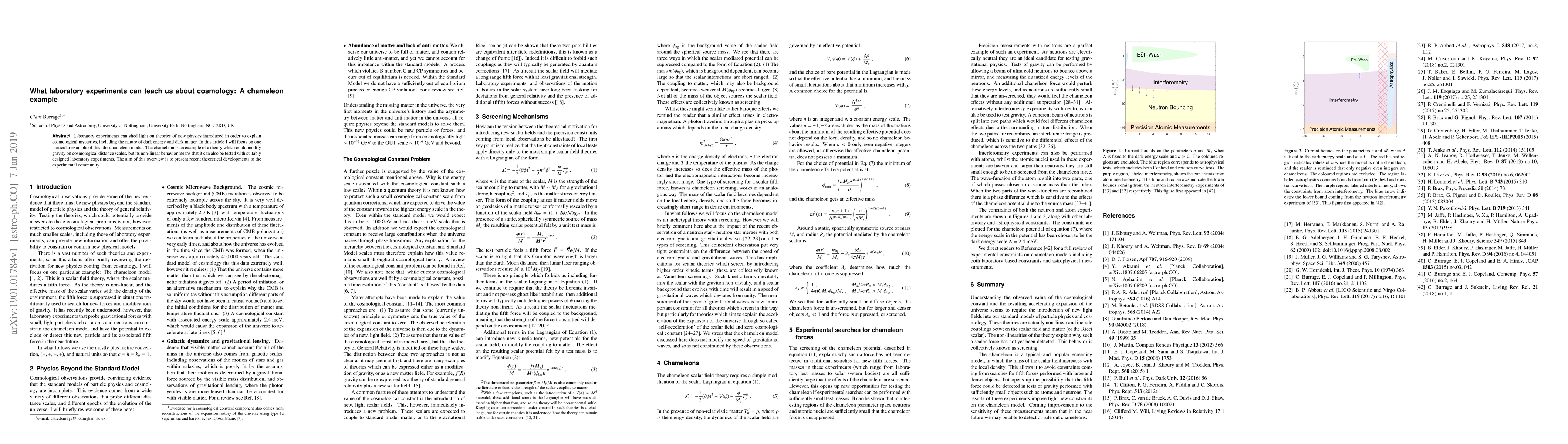 This paper discusses how laboratory experiments can test the chameleon model, a theoretical framework that modifies gravity on cosmological scales and can be scrutinized through carefully designed lab experiments. The author aims to bridge theoretical advancements with experimental possibilities for the experimental community.
