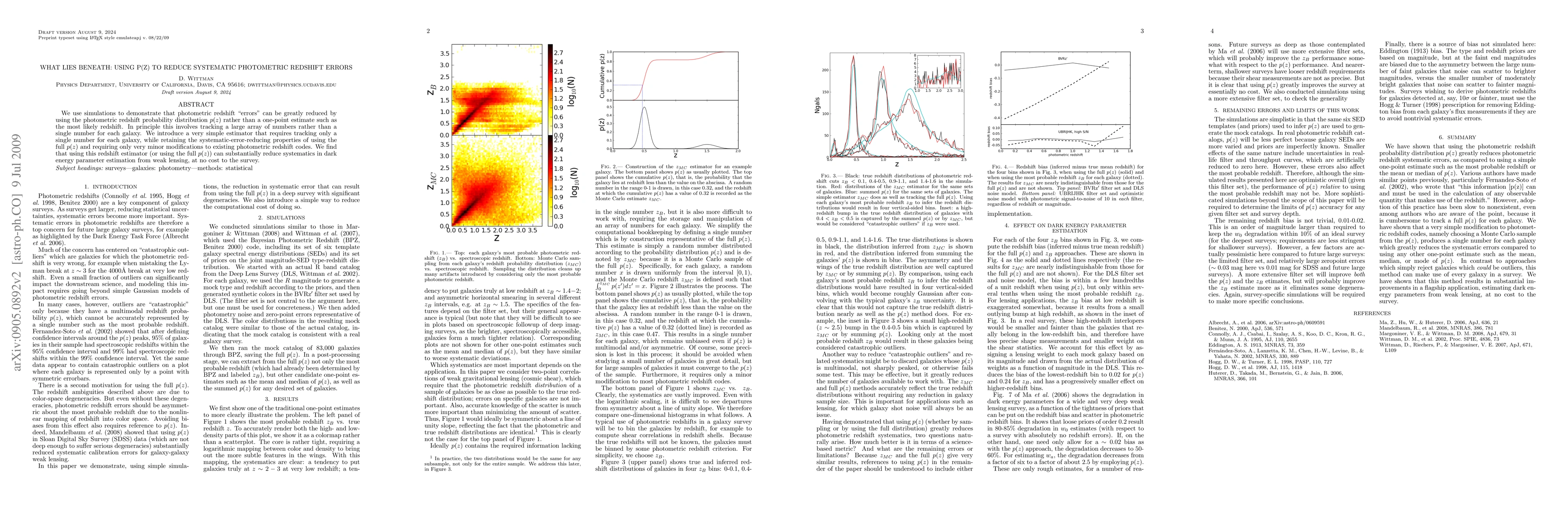 Using the probability distribution of photometric redshifts (p(z)) can significantly reduce errors in estimating dark energy parameters from weak lensing surveys. This approach requires only minor modifications to existing codes and offers substantial systematics reduction at no cost.