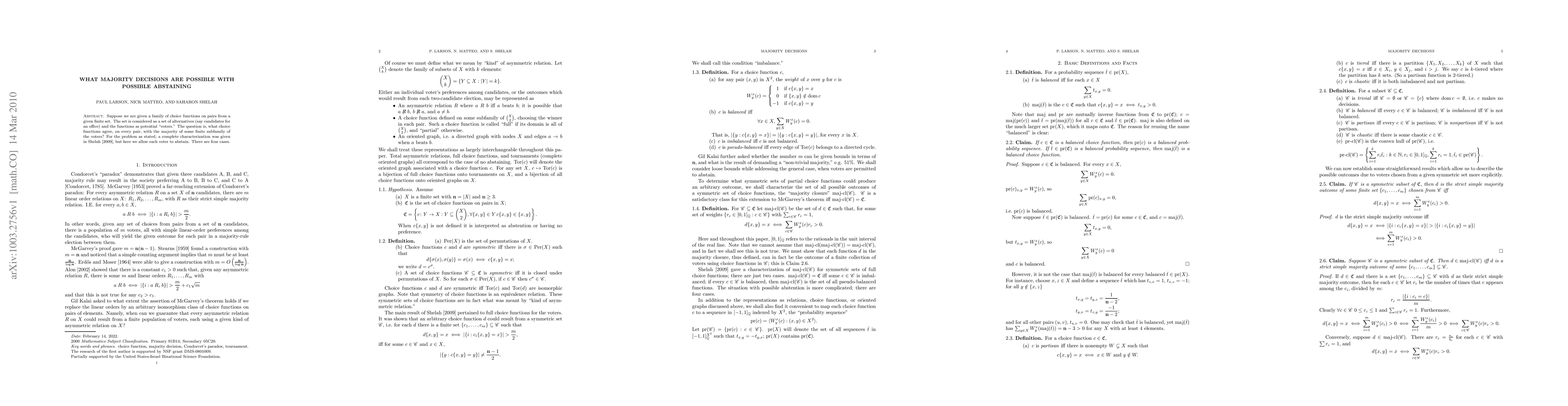 This research paper extends a previous study on majority decisions by permitting voter abstention. It provides a complete characterization of four possible scenarios where choice functions on pairs from a finite set of alternatives align with the majority of some finite subfamily of voters, including those who may abstain.
