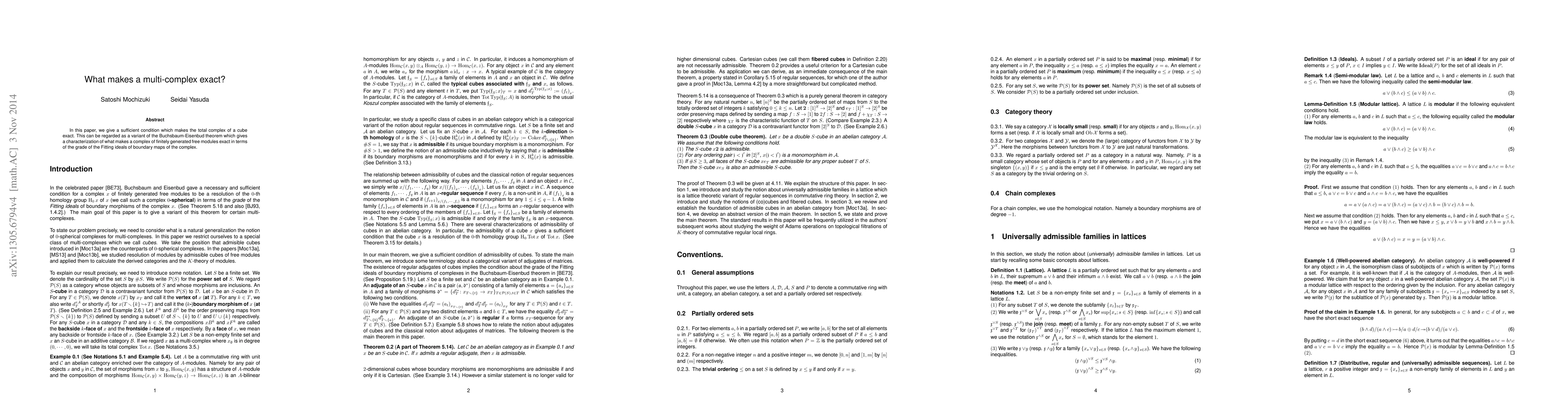 This paper provides a sufficient condition for the total complex of a cube to be exact, extending the Buchsbaum-Eisenbud theorem to characterize exactness based on the grade of Fitting ideals of boundary maps.