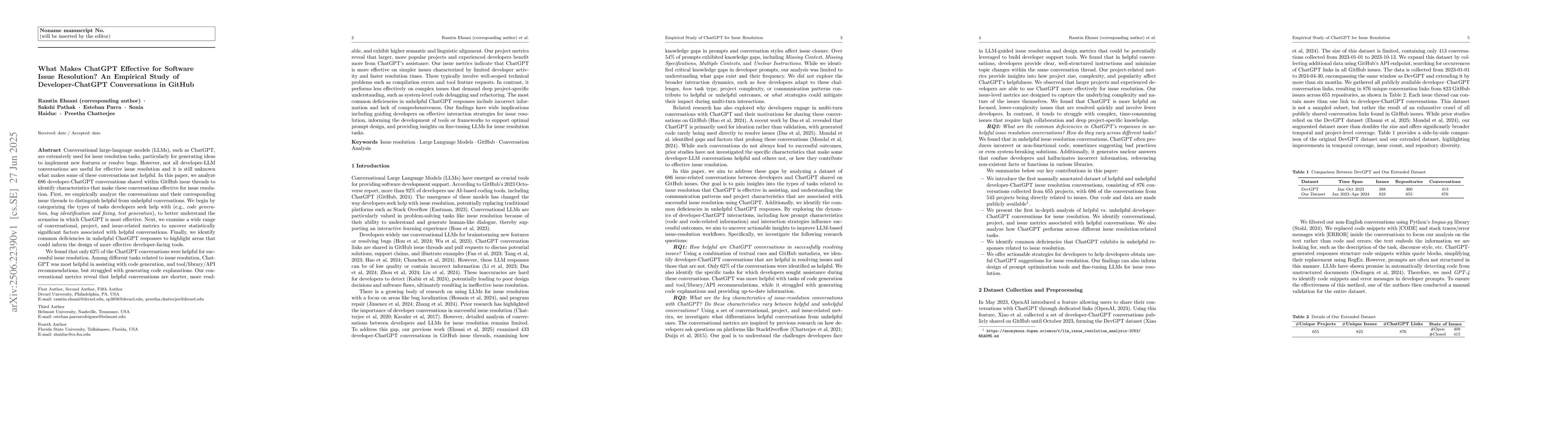 Conversational large-language models are extensively used for issue resolution tasks. However, not all developer-LLM conversations are useful for effective issue resolution. In this paper, we analyze 686 developer-ChatGPT conversations shared within GitHub issue threads to identify characteristics that make these conversations effective for issue resolution. First, we analyze the conversations and their corresponding issues to distinguish helpful from unhelpful conversations. We begin by categorizing the types of tasks developers seek help with to better understand the scenarios in which ChatGPT is most effective. Next, we examine a wide range of conversational, project, and issue-related metrics to uncover factors associated with helpful conversations. Finally, we identify common deficiencies in unhelpful ChatGPT responses to highlight areas that could inform the design of more effective developer-facing tools. We found that only 62% of the ChatGPT conversations were helpful for successful issue resolution. ChatGPT is most effective for code generation and tools/libraries/APIs recommendations, but struggles with code explanations. Helpful conversations tend to be shorter, more readable, and exhibit stronger semantic and linguistic alignment. Larger, more popular projects and more experienced developers benefit more from ChatGPT. At the issue level, ChatGPT performs best on simpler problems with limited developer activity and faster resolution, typically well-scoped tasks like compilation errors. The most common deficiencies in unhelpful ChatGPT responses include incorrect information and lack of comprehensiveness. Our findings have wide implications including guiding developers on effective interaction strategies for issue resolution, informing the development of tools or frameworks to support optimal prompt design, and providing insights on fine-tuning LLMs for issue resolution tasks.