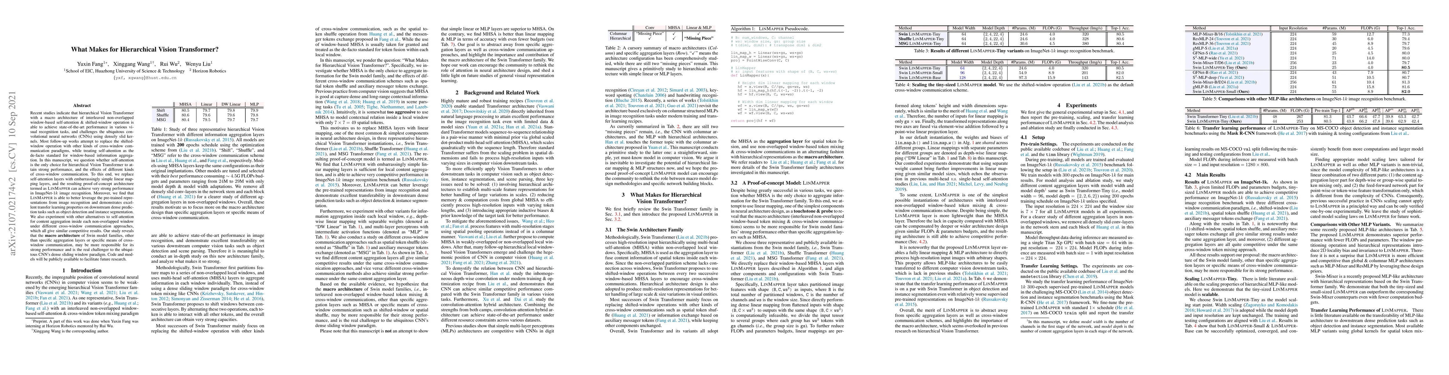 This research investigates alternative methods for hierarchical Vision Transformers, specifically questioning the necessity of self-attention for achieving strong performance. The study proposes a simple linear mapping approach termed LinMapper, which still achieves competitive results in visual recognition tasks, suggesting that the overall architecture may be more critical than the specific aggregation method. The findings challenge the dominance of convolutional neural networks and highlight the potential of alternative cross-window communication paradigms.
