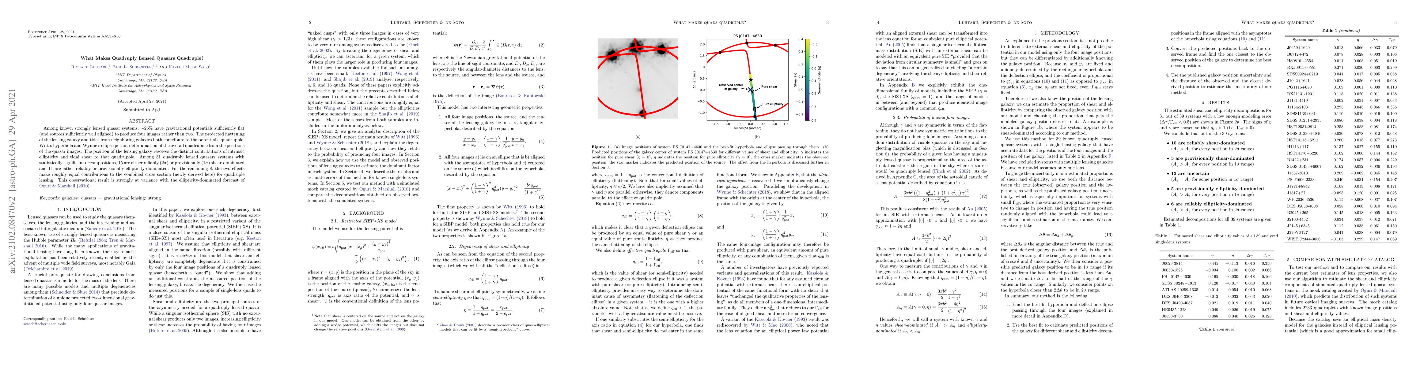 This paper investigates the mechanisms behind quadruply lensed quasars, finding that 25% of strongly lensed quasar systems produce four images due to sufficiently flat gravitational potentials. It concludes that tidal forces from neighboring galaxies and the intrinsic ellipticity of the lensing galaxy both contribute to the quadrupole, with shear-dominated and ellipticity-dominated systems making up the majority of observed quadruply lensed quasars.