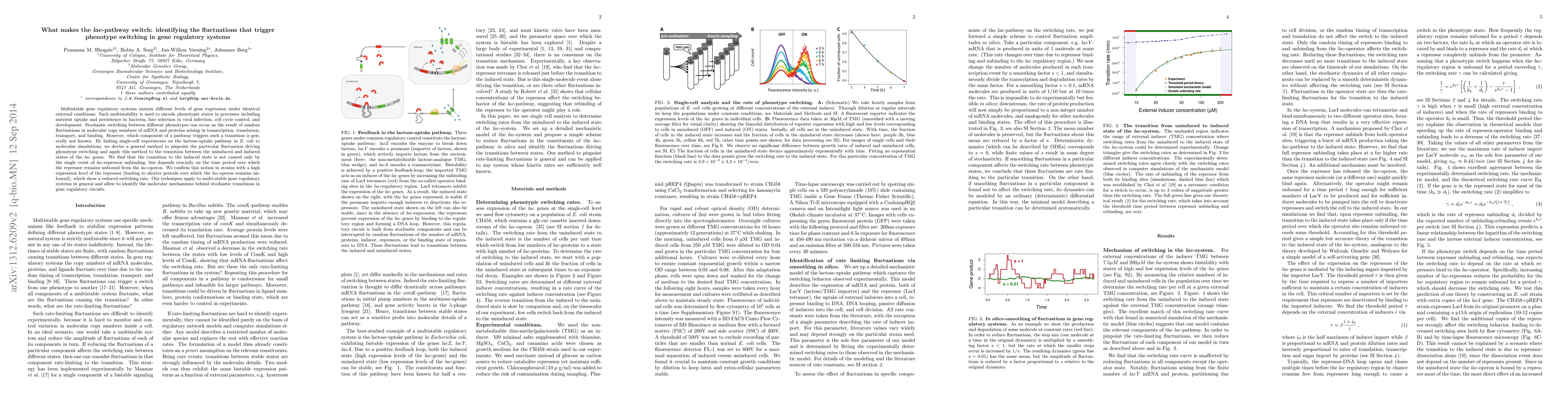 This paper identifies the molecular fluctuations that trigger phenotype switching in the lac-pathway of E. coli, demonstrating that the transition to the induced state depends on the duration of lac-repressor unbinding rather than just its occurrence. The study combines single-cell experiments and molecular simulations to reveal the underlying mechanisms of stochastic transitions in gene regulatory systems.