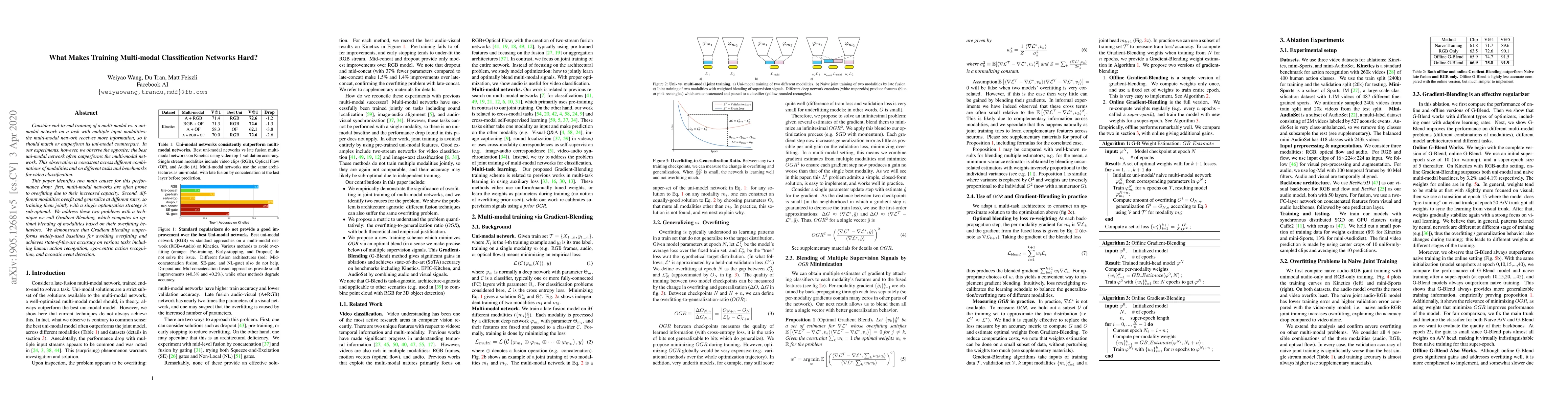 This paper investigates why multi-modal classification networks underperform compared to single-modal networks despite receiving more information. It identifies overfitting and differing generalization rates across modalities as main causes, proposing Gradient Blending to address these issues, which achieves superior performance on various tasks.
