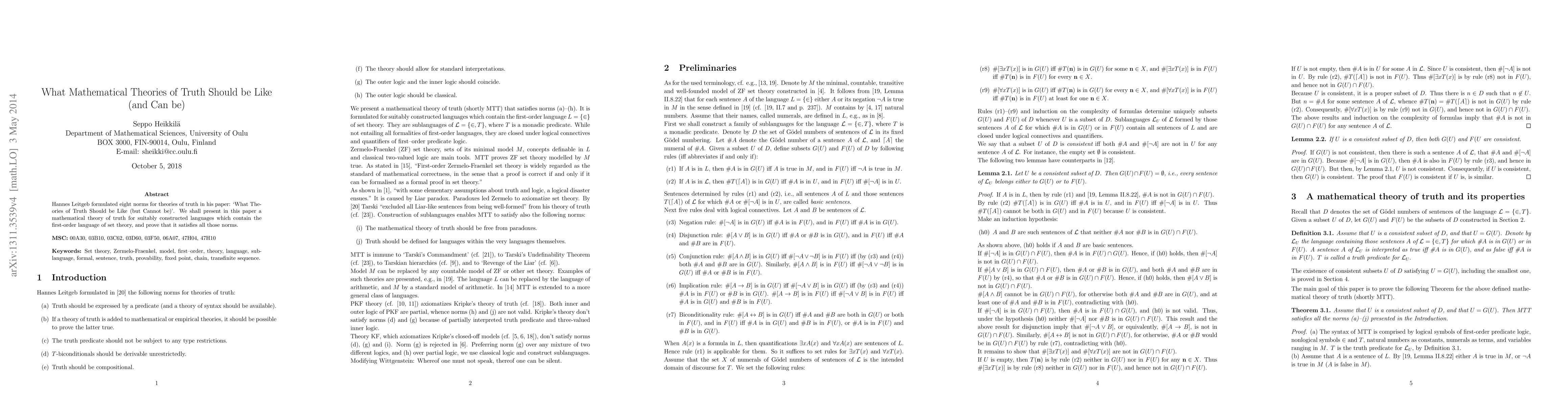 Hannes Leitgeb formulated eight norms for theories of truth in his paper: `What Theories of Truth Should be Like (but Cannot be'). We shall present in this paper a theory of truth for suitably constructed languages which contain the first-order language of set theory, and prove that it satisfies all those norms.