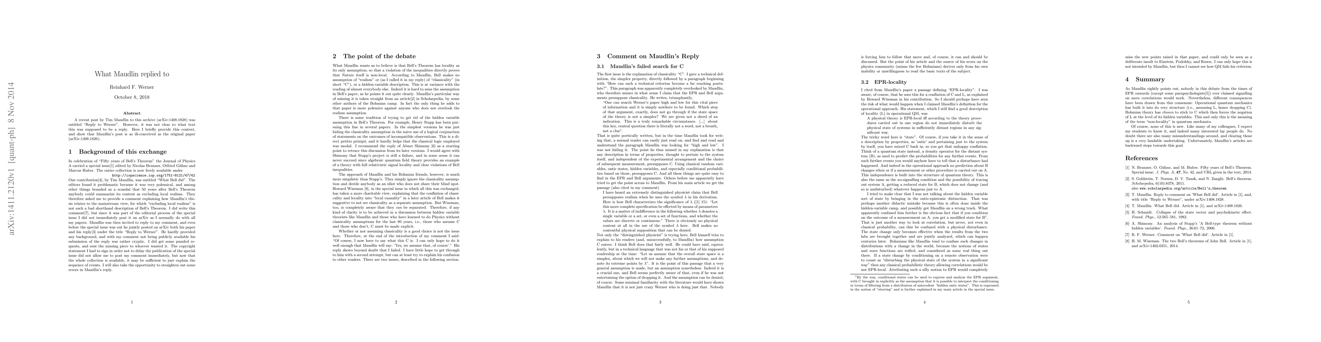 Summary: This paper clarifies the context of Tim Maudlin's reply to Werner's work, demonstrating that Maudlin's response is flawed and shares the same conceptual issues as Werner's original paper.