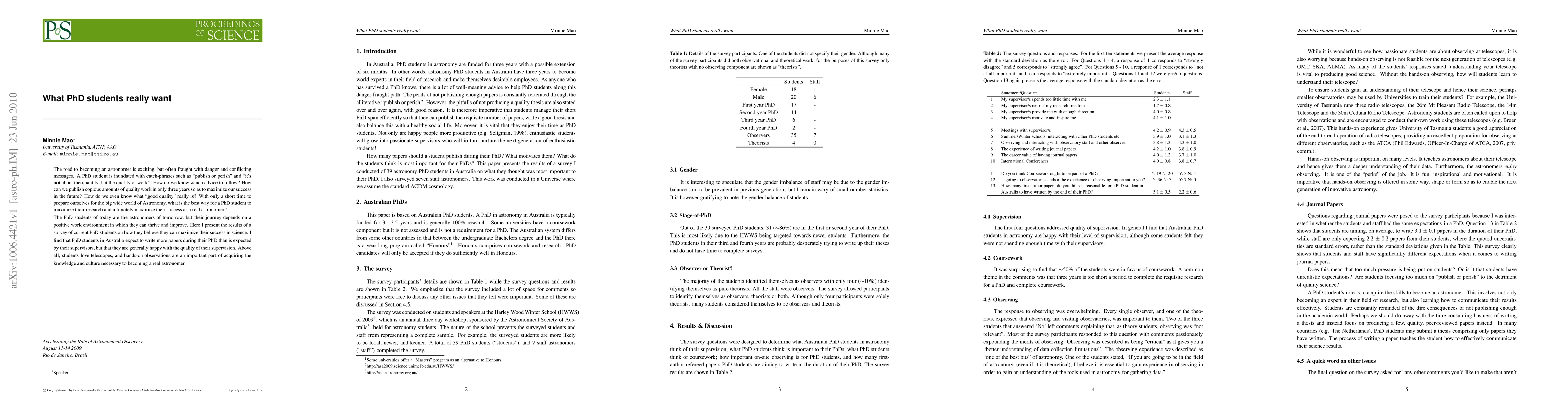 This paper surveys Australian PhD students in astronomy to understand their expectations and experiences regarding research output and supervision. The findings reveal that students aim to publish more papers than expected while valuing hands-on observational experience and quality supervision.