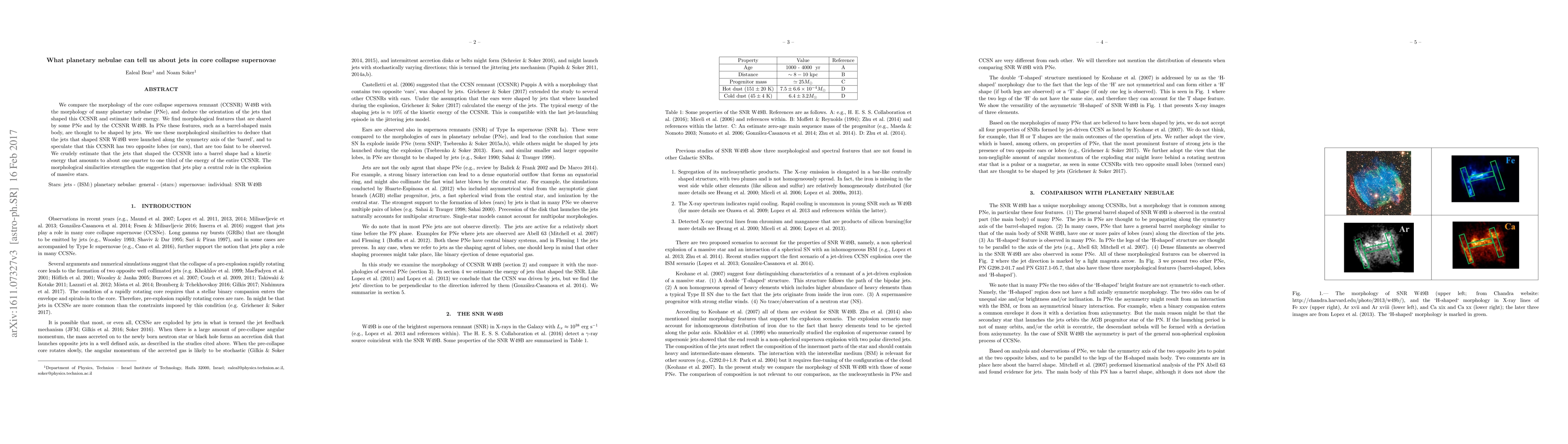 Researchers studied planetary nebulae to understand jets in core collapse supernovae, finding similar morphological features that suggest the jets shaped the supernova remnant W49B with significant energy, about a quarter to one-third of its total energy.
