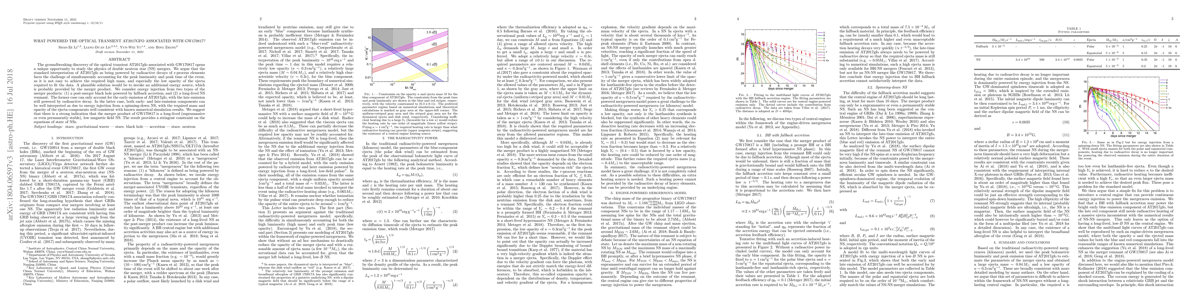 Research suggests that the optical transient AT2017gfo may have been powered by an additional energy source from a long-lived neutron star remnant, rather than radioactive decay of r-process elements.