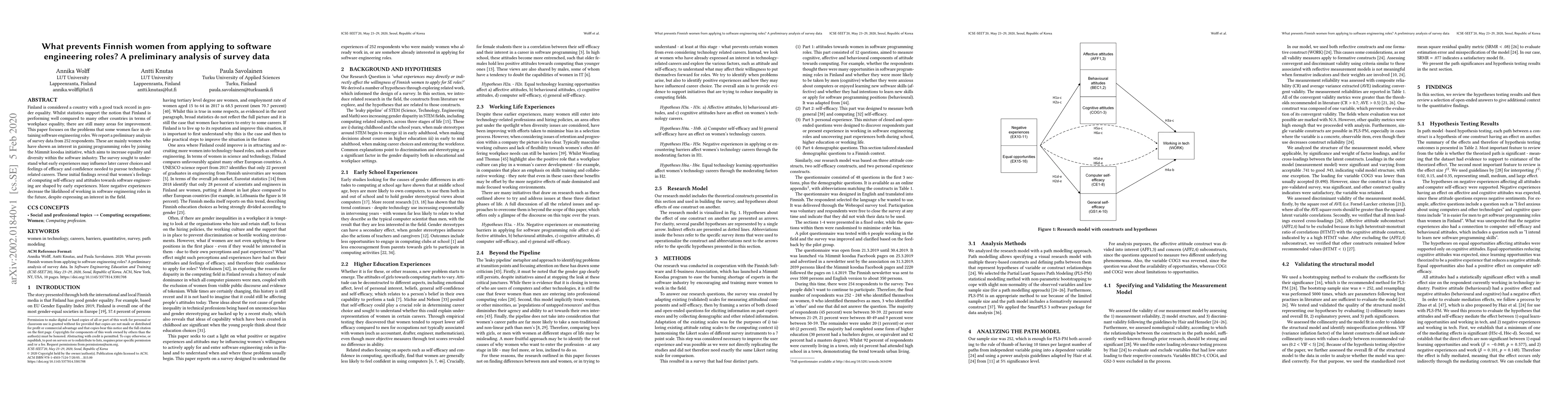 This paper explores the barriers Finnish women face in applying for software engineering roles, revealing that early negative experiences significantly impact their computing self-efficacy and attitudes towards the field. Despite Finland's strong gender equality, these findings highlight the need for initiatives to improve women's confidence and interest in technology careers.