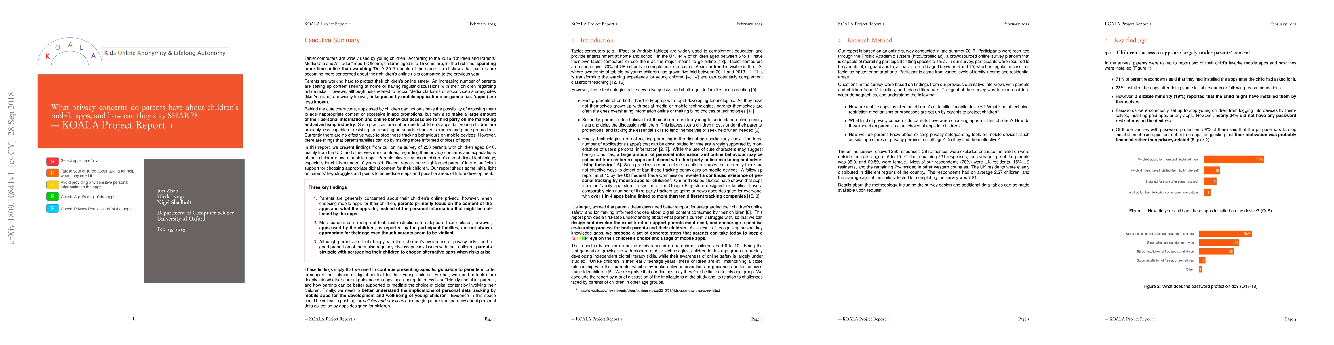 This research explores parents' privacy concerns regarding children's use of mobile apps, highlighting their worries about inappropriate content and excessive data collection by third parties. The study suggests that parents need better support to ensure their children's online safety and proposes immediate actions and future developments to address these concerns.