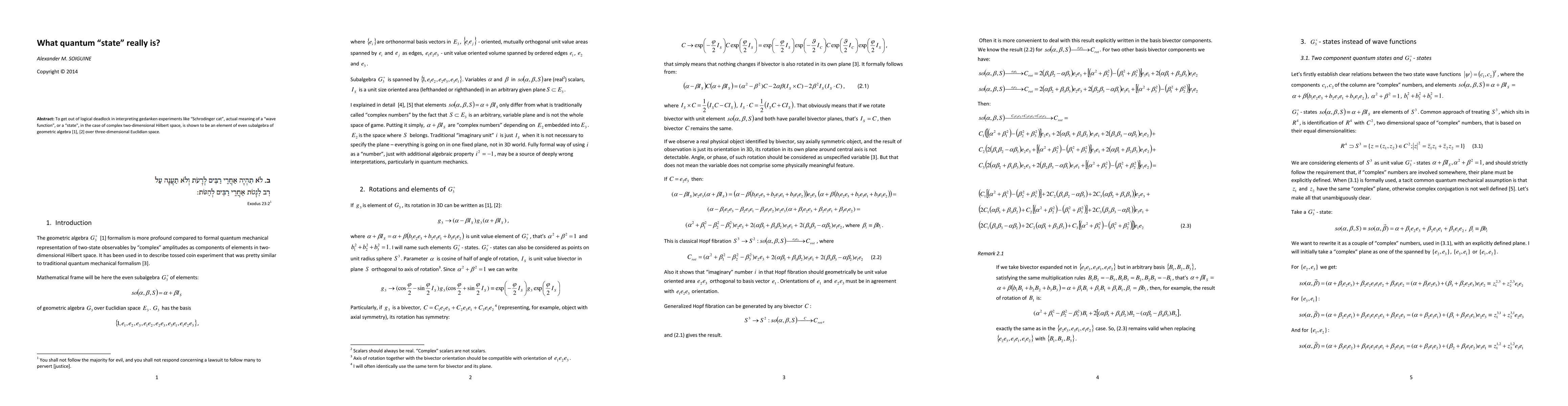To get out of logical deadlock in interpreting gedanken experiments like Schrodinger cat, actual meaning of a wave function, or a state, in the case of complex two-dimensional Hilbert space, is shown to represent transformations executing by elements of even subalgebra of geometric algebra over three-dimensional Euclidian space.