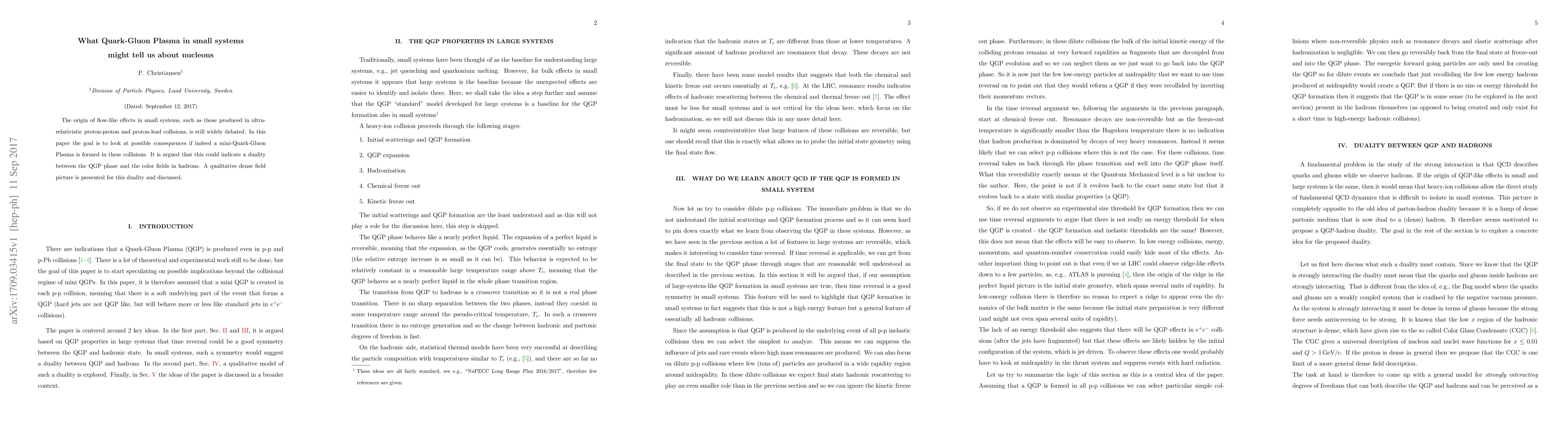This paper investigates the potential formation of a mini-Quark-Gluon Plasma in small systems from ultra-relativistic collisions, suggesting it may reveal a duality between the QGP phase and the color fields in nucleons, with implications for understanding dense field interactions.