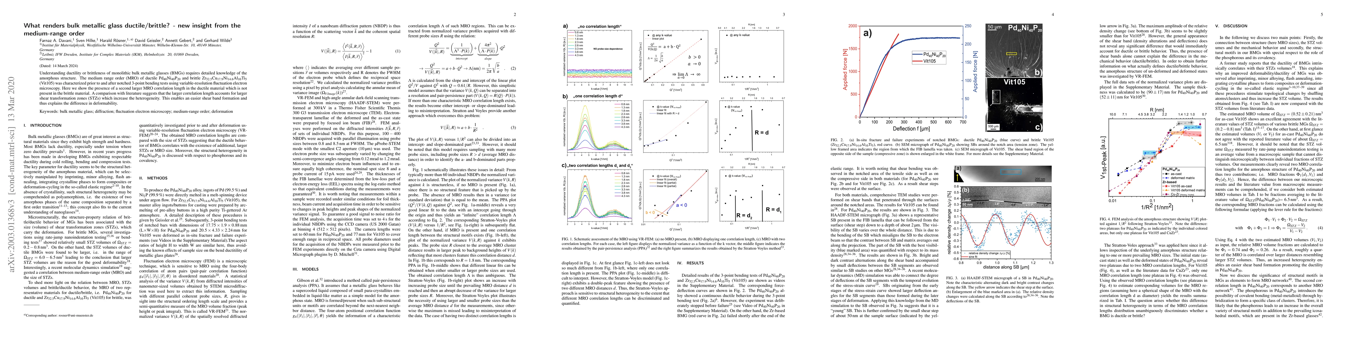 This study reveals that the ductility of bulk metallic glasses (BMGs) is linked to the presence of a larger medium-range order (MRO) correlation length, which facilitates the formation of larger shear transformation zones (STZs). In contrast, brittle BMGs lack this extended MRO, resulting in reduced deformability.