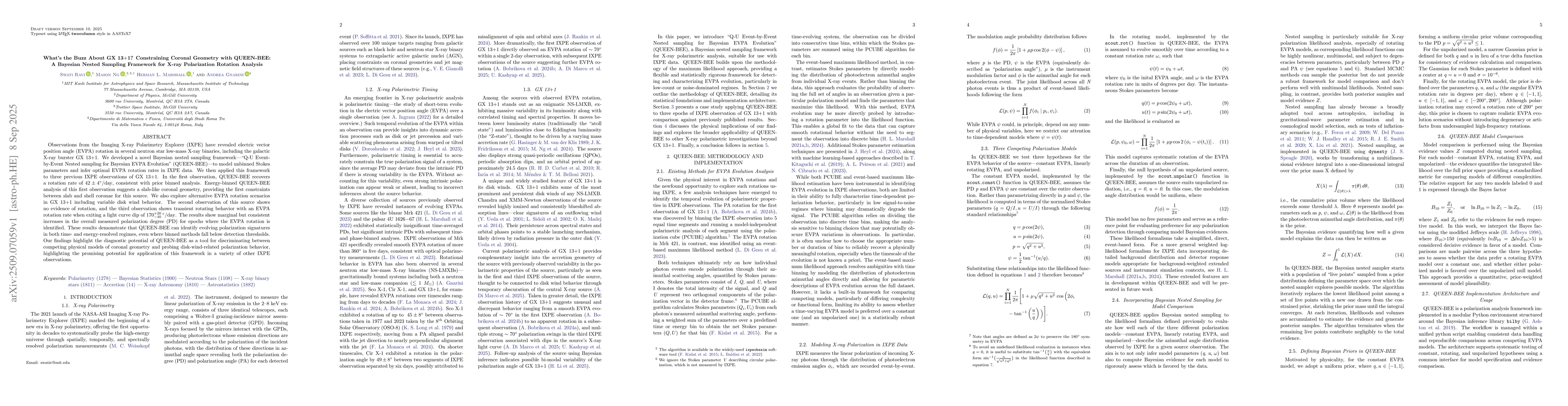 Observations from the Imaging X-ray Polarimetry Explorer (IXPE) have revealed electric vector position angle (EVPA) rotation in several neutron star low-mass X-ray binaries, including the galactic X-ray burster GX 13+1. We developed a novel Bayesian nested sampling framework-"Q-U Event-by-Event Nested sampling for Bayesian EVPA Evolution" (QUEEN-BEE)-to model unbinned Stokes parameters and infer optimal EVPA rotation rates in IXPE data. We then applied this framework to three previous IXPE observations of GX 13+1. In the first observation, QUEEN-BEE recovers a rotation rate of 42+/-4 degrees/day, consistent with prior binned analysis. Energy-binned QUEEN-BEE analysis of this first observation suggests a slab-like coronal geometry, providing the first constraints between slab and shell coronae for this source. We also explore alternative EVPA rotation scenarios in GX 13+1 including variable disk wind behavior. The second observation of this source shows no evidence of rotation, and the third observation shows transient rotating behavior with an EVPA rotation rate when exiting a light curve dip of 170 +20/-40 degrees/day. The results show marginal but consistent increases in the overall measured polarization degree (PD) for epochs where the EVPA rotation is identified. These results demonstrate that QUEEN-BEE can identify evolving polarization signatures in both time- and energy-resolved regimes, even where binned methods fall below detection thresholds. Our findings highlight the diagnostic potential of QUEEN-BEE as a tool for discriminating between competing physical models of coronal geometry and probing disk-wind-related polarization behavior, highlighting the promising potential for application of this framework in a variety of other IXPE observations.