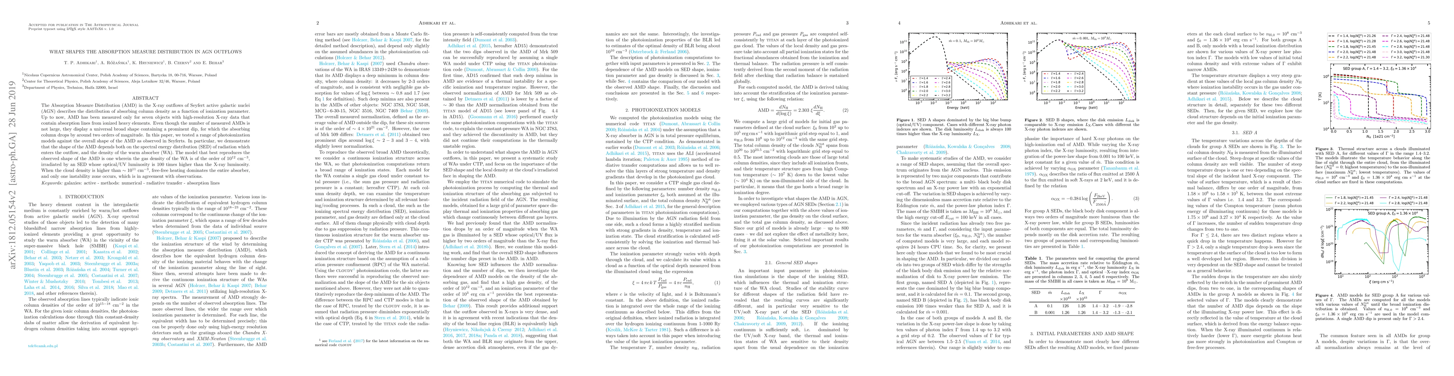 The Absorption Measure Distribution (AMD) in the X-ray outflows of Seyfert active galactic nuclei (AGN) describes the distribution of absorbing column density as a function of ionization parameter. Up to now, AMD has been measured only for seven objects with high-resolution X-ray data that contain absorption lines from ionized heavy elements. Even though the number of measured AMDs is not large, they display a universal broad shape containing a prominent dip, for which the absorbing column drops by around two orders of magnitude. In this paper, we tested a range of photoionization models against the overall shape of the AMD as observed in Seyferts. In particular, we demonstrate that the shape of the AMD depends both on the spectral energy distribution (SED) of radiation which enters the outflow, and the density of the warm absorber (WA). The model that best reproduces the observed shape of the AMD is one wherein the gas density of the WA is of the order of $10^{12}$ cm$^{-3}$, irradiated by an SED whose optical/UV luminosity is 100 times higher than the X-ray luminosity. When the cloud density is higher than $\sim 10^{11}$ cm$^{-3}$, free-free heating dominates the entire absorber, and only one instability zone occurs, which is in agreement with observations.