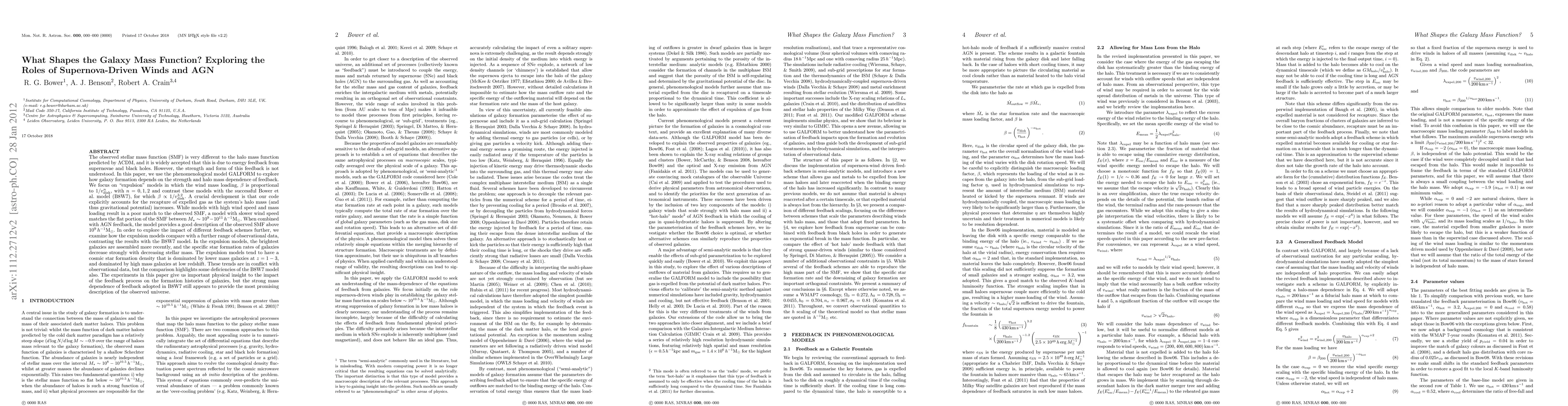 This paper uses the GALFORM model to investigate how supernova-driven winds and AGN feedback shape the galaxy mass function, finding that high mass loading with moderate wind speed fits the observed SMF. However, it highlights discrepancies between expulsion models and observational data, suggesting that the B8W7 model still offers the best match to the observed universe.