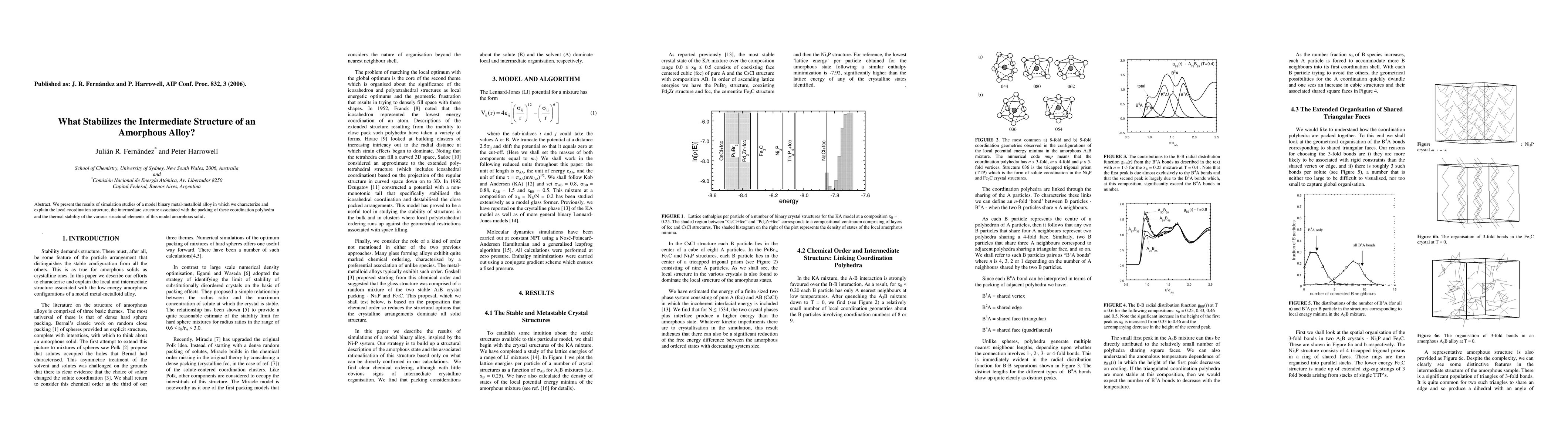 We present the results of simulation studies of a model binary metal-metalloid alloy in which we characterize and explain the local coordination structure, the intermediate structure associated with the packing of these coordination polyhedra and the thermal stability of the various structural elements of this model amorphous solid.