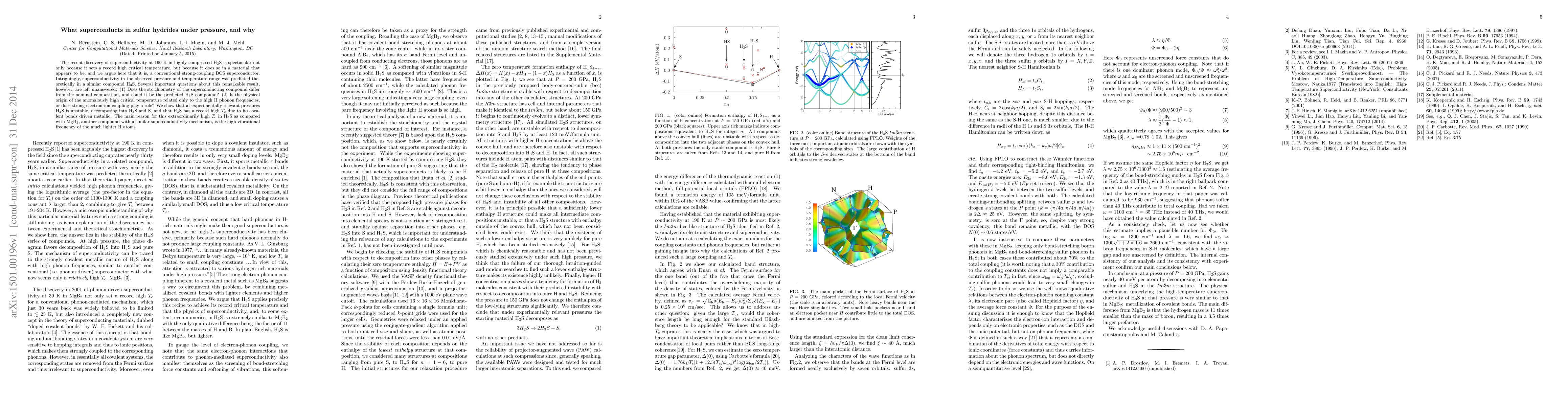 The recent discovery of superconductivity at 190~K in highly compressed H$_{2}$S is spectacular not only because it sets a record high critical temperature, but because it does so in a material that appears to be, and we argue here that it is, a conventional strong-coupling BCS superconductor. Intriguingly, superconductivity in the observed pressure and temperature range was predicted theoretically in a similar compound H$_{3}$S. Several important questions about this remarkable result, however, are left unanswered: (1) Does the stoichiometry of the superconducting compound differ from the nominal composition, and could it be the predicted H$_{3}$S compound? (2) Is the physical origin of the anomalously high critical temperature related only to the high H phonon frequencies, or does strong electron-ion coupling play a role? We show that at experimentally relevant pressures H$_2$S is unstable, decomposing into H$_3$S and S, and that H$_3$S has a record high $T_c$ due to its covalent bonds driven metallic. The main reason for this extraordinarily high $T_c$ in H$_3$S as compared with MgB$_2$, another compound with a similar superconductivity mechanism, is the high vibrational frequency of the much lighter H atoms.