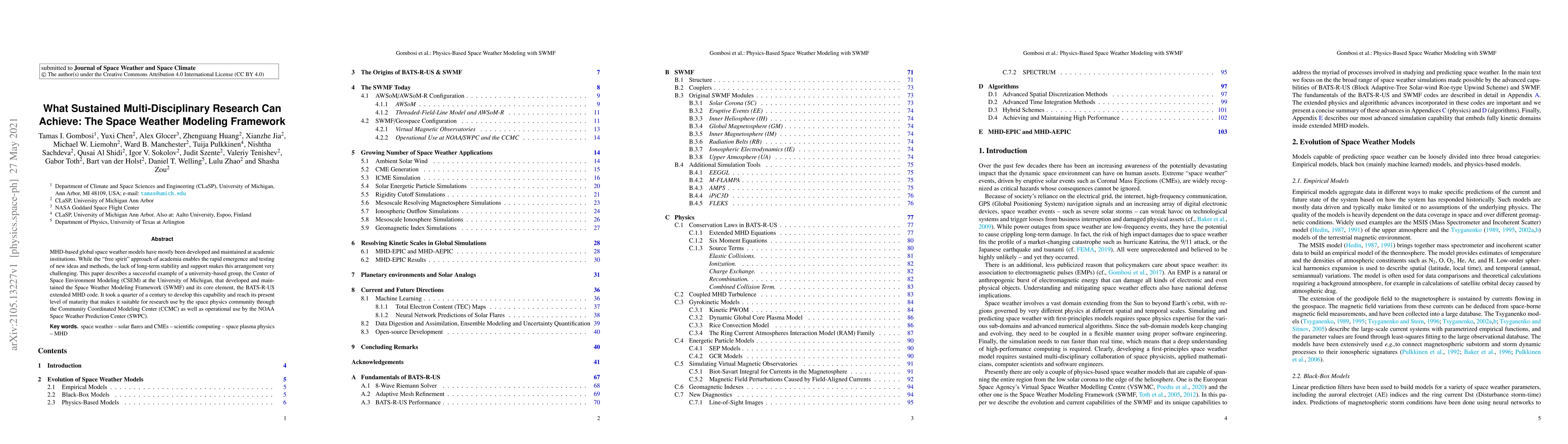 MHD-based global space weather models have mostly been developed and maintained at academic institutions. While the "free spirit" approach of academia enables the rapid emergence and testing of new ideas and methods, the lack of long-term stability and support makes this arrangement very challenging. This paper describes a successful example of a university-based group, the Center of Space Environment Modeling (CSEM) at the University of Michigan, that developed and maintained the Space Weather Modeling Framework (SWMF) and its core element, the BATS-R-US extended MHD code. It took a quarter of a century to develop this capability and reach its present level of maturity that makes it suitable for research use by the space physics community through the Community Coordinated Modeling Center (CCMC) as well as operational use by the NOAA Space Weather Prediction Center (SWPC).