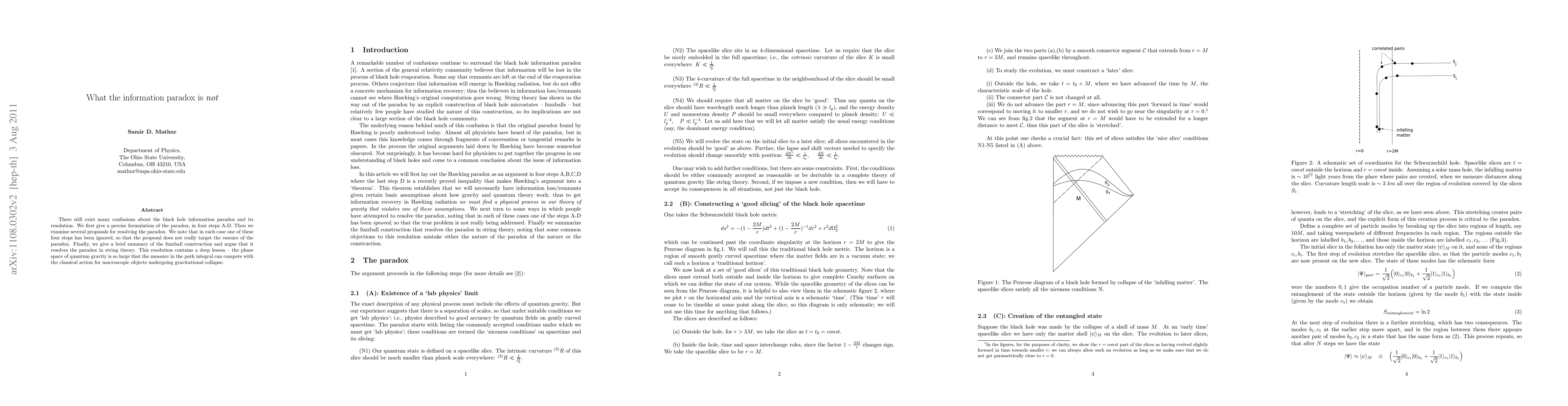 There still exist many confusions about the black hole information paradox and its resolution. We first give a precise formulation of the paradox, in four steps A-D. Then we examine several proposals for resolving the paradox. We note that in each case one of these four steps has been ignored, so that the proposal does not really target the essence of the paradox. Finally, we give a brief summary of the fuzzball construction and argue that it resolves the paradox in string theory. This resolution contains a deep lesson -- the phase space of quantum gravity is so large that the measure in the path integral can compete with the classical action for macroscopic objects undergoing gravitational collapse.