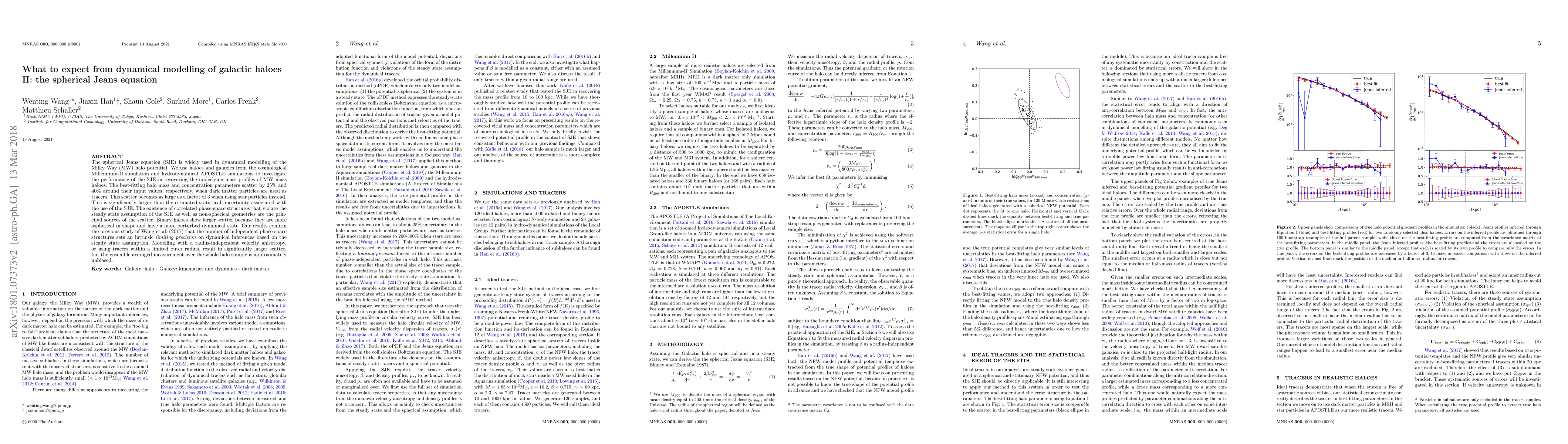 The spherical Jeans equation shows significant scatter in recovered mass profiles of Milky Way haloes when using star particles as tracers, highlighting the limitations of dynamical modelling with steady state assumptions.