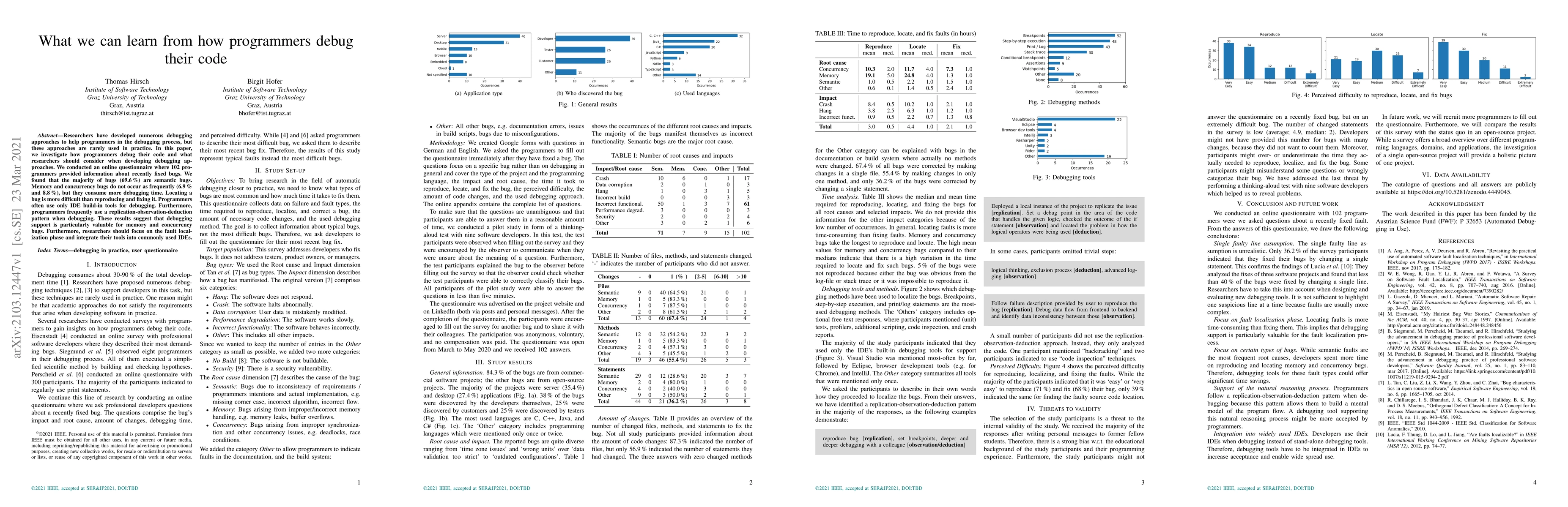 This study investigates how programmers debug their code, revealing that 69.6% of bugs are semantic, while memory and concurrency bugs are less frequent but more time-consuming. Researchers should prioritize fault localization and integrate debugging tools into commonly used IDEs.
