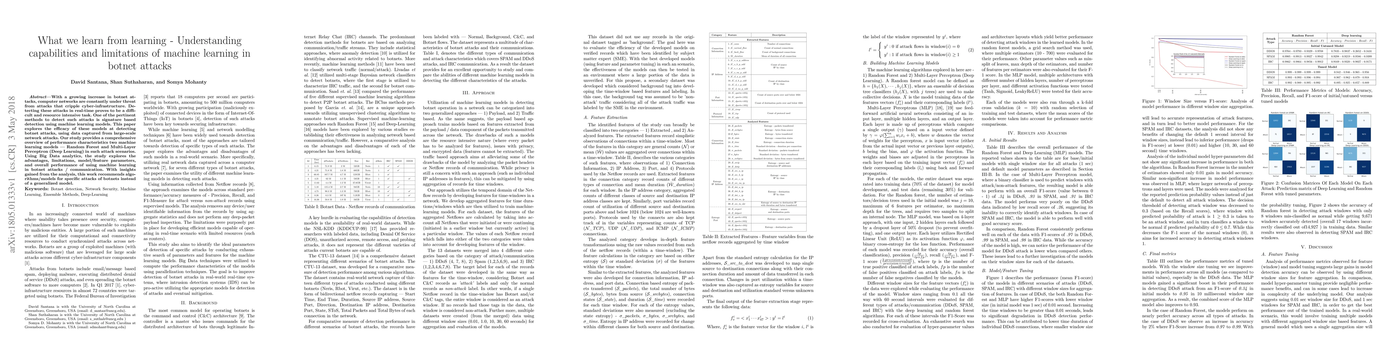 This paper evaluates the effectiveness of Random Forest and Multi-Layer Perceptron models for detecting botnet attacks using large-scale network data. It highlights the strengths and limitations of these machine learning approaches, recommending tailored algorithms for specific botnet attack scenarios rather than a one-size-fits-all model.