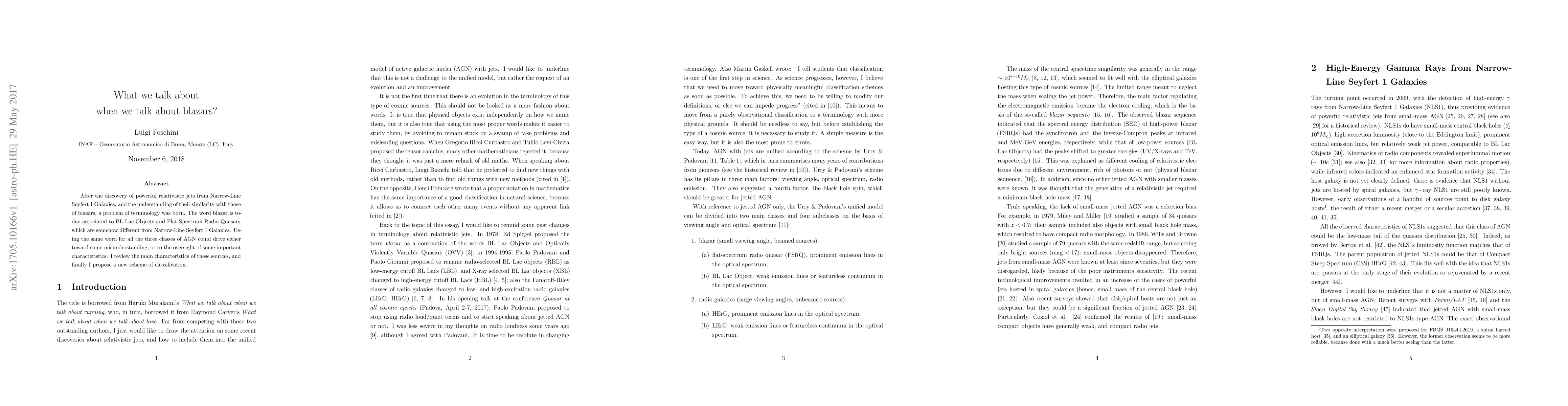 After the discovery of powerful relativistic jets from Narrow-Line Seyfert 1 Galaxies, and the understanding of their similarity with those of blazars, a problem of terminology was born. The word blazar is today associated to BL Lac Objects and Flat-Spectrum Radio Quasars, which are somehow different from Narrow-Line Seyfert 1 Galaxies. Using the same word for all the three classes of AGN could drive either toward some misunderstanding, or to the oversight of some important characteristics. I review the main characteristics of these sources, and finally I propose a new scheme of classification.
