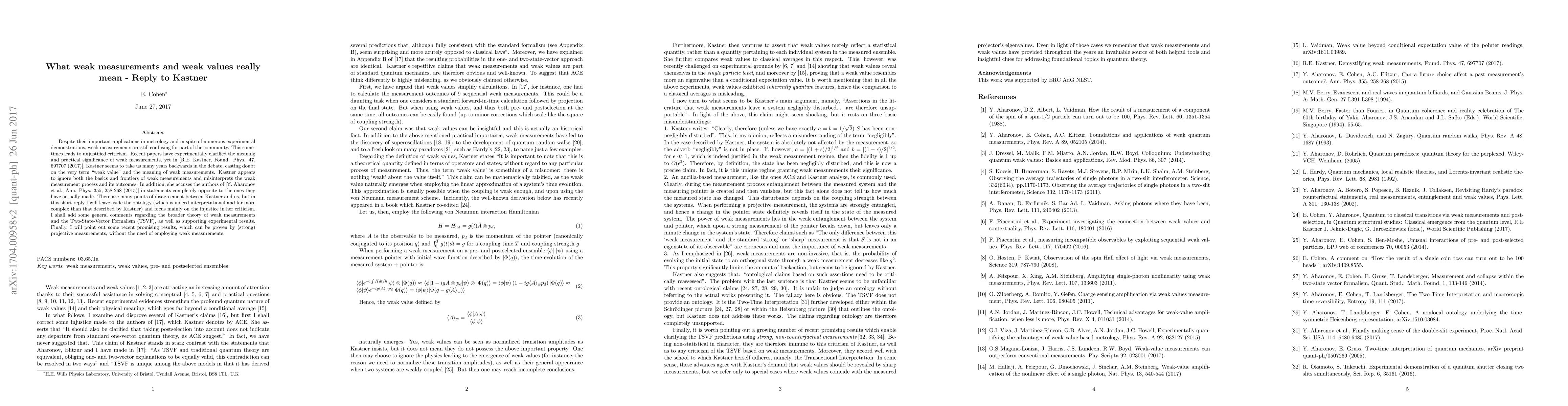 This paper addresses the confusion surrounding weak measurements and weak values, countering criticism by Kastner who misinterprets the concept and outcomes of weak measurements. The author emphasizes the practical significance of weak measurements and highlights recent experimental clarifications, while also pointing out promising results that can be demonstrated without weak measurements.
