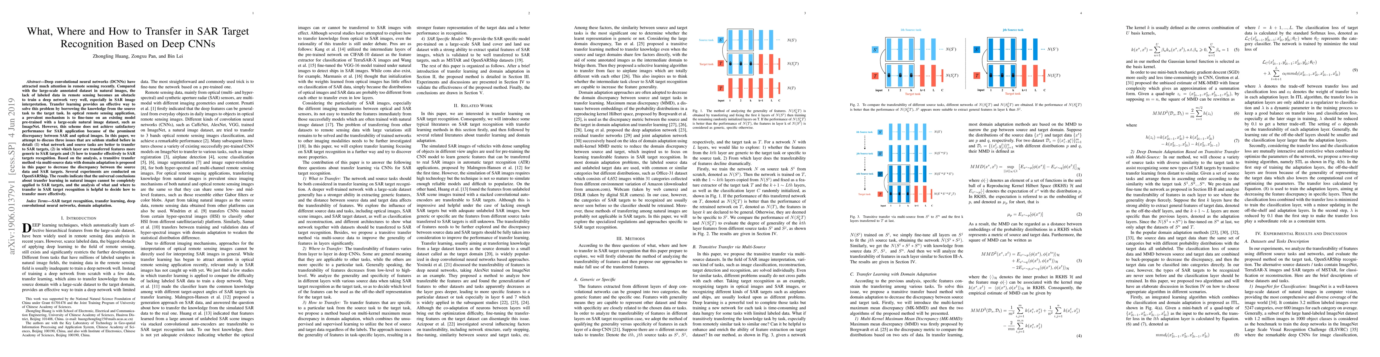This paper investigates optimal strategies for transfer learning using deep convolutional neural networks (DCNNs) for SAR target recognition, addressing the lack of labeled remote sensing data. It proposes a transitive transfer method via multi-source data with domain adaptation to bridge the gap between source and SAR target data, demonstrating that traditional transfer learning methods for natural images are not fully applicable to SAR applications.