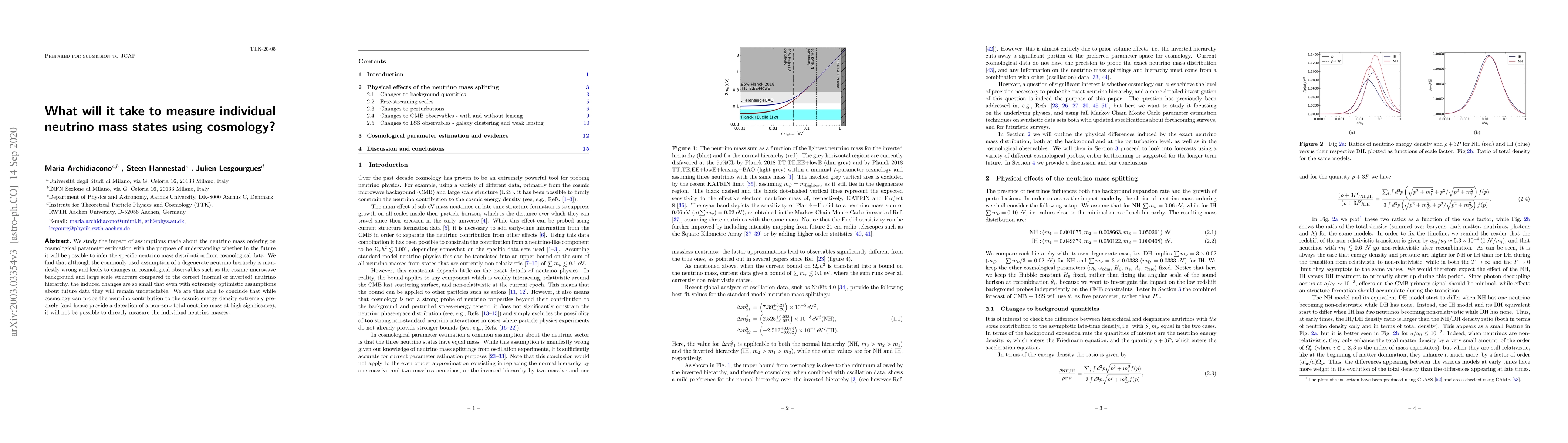 We study the impact of assumptions made about the neutrino mass ordering on cosmological parameter estimation with the purpose of understanding whether in the future it will be possible to infer the specific neutrino mass distribution from cosmological data. We find that although the commonly used assumption of a degenerate neutrino hierarchy is manifestly wrong and leads to changes in cosmological observables such as the cosmic microwave background and large scale structure compared to the correct (normal or inverted) neutrino hierarchy, the induced changes are so small that even with extremely optimistic assumptions about future data they will remain undetectable. We are thus able to conclude that while cosmology can probe the neutrino contribution to the cosmic energy density extremely precisely (and hence provide a detection of a non-zero total neutrino mass at high significance), it will not be possible to directly measure the individual neutrino masses.