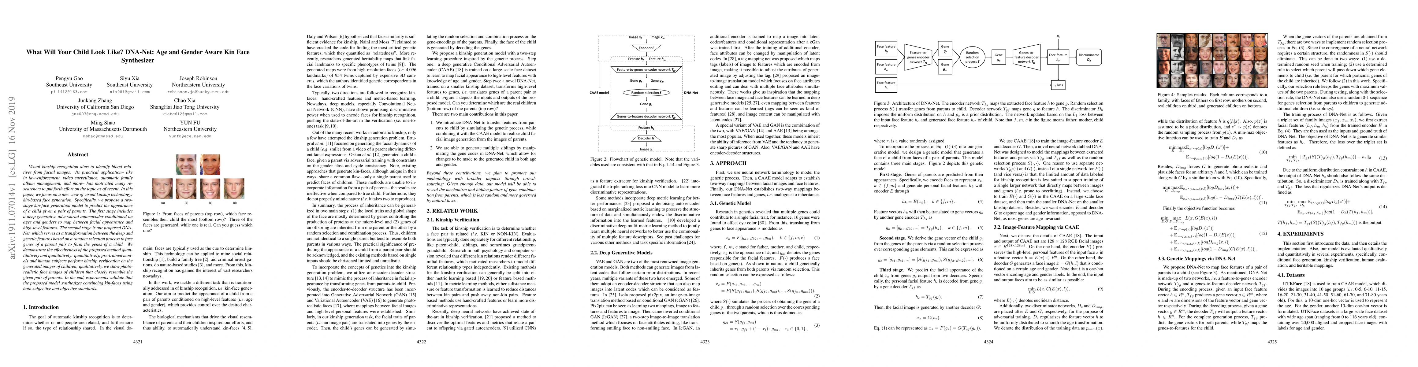 A new model, DNA-Net, generates realistic images of children based on their parents' faces, using a two-stage process that combines facial appearance and genetic features.