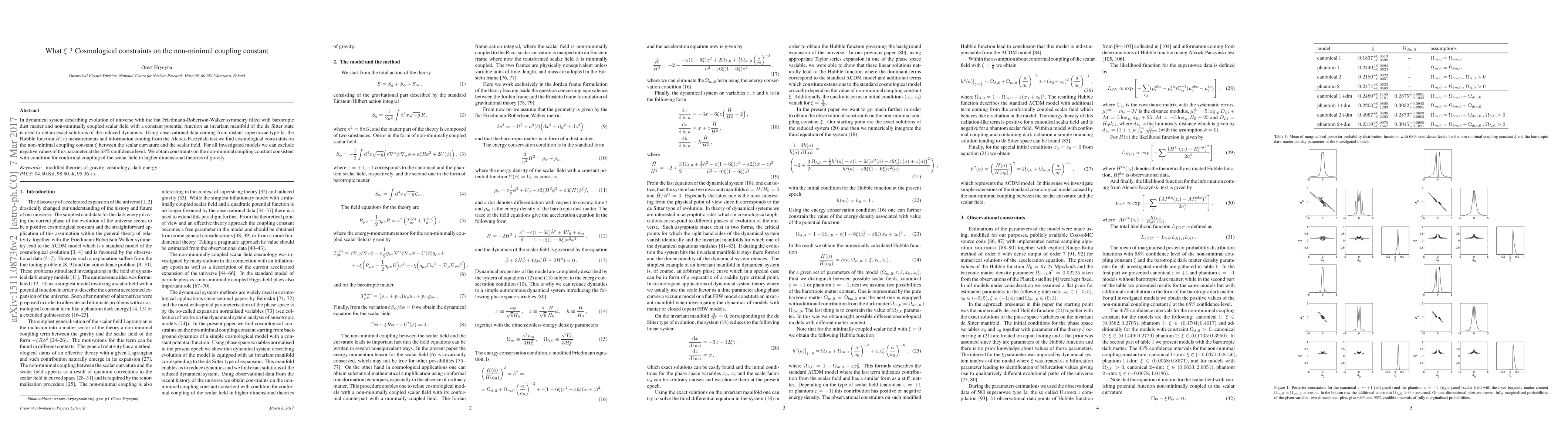 In dynamical system describing evolution of universe with the flat Friedmann-Robertson-Walker symmetry filled with barotropic dust matter and non-minimally coupled scalar field with a constant potential function an invariant manifold of the de Sitter state is used to obtain exact solutions of the reduced dynamics. Using observational data coming from distant supernovae type Ia, the Hubble function $H(z)$ measurements and information coming from the Alcock-Paczy$\'n$ski test we find cosmological constraints on the non-minimal coupling constant $\xi$ between the scalar curvature and the scalar field. For all investigated models we can exclude negative values of this parameter at the $68\%$ confidence level. We obtain constraints on the non-minimal coupling constant consistent with condition for conformal coupling of the scalar field in higher dimensional theories of gravity.