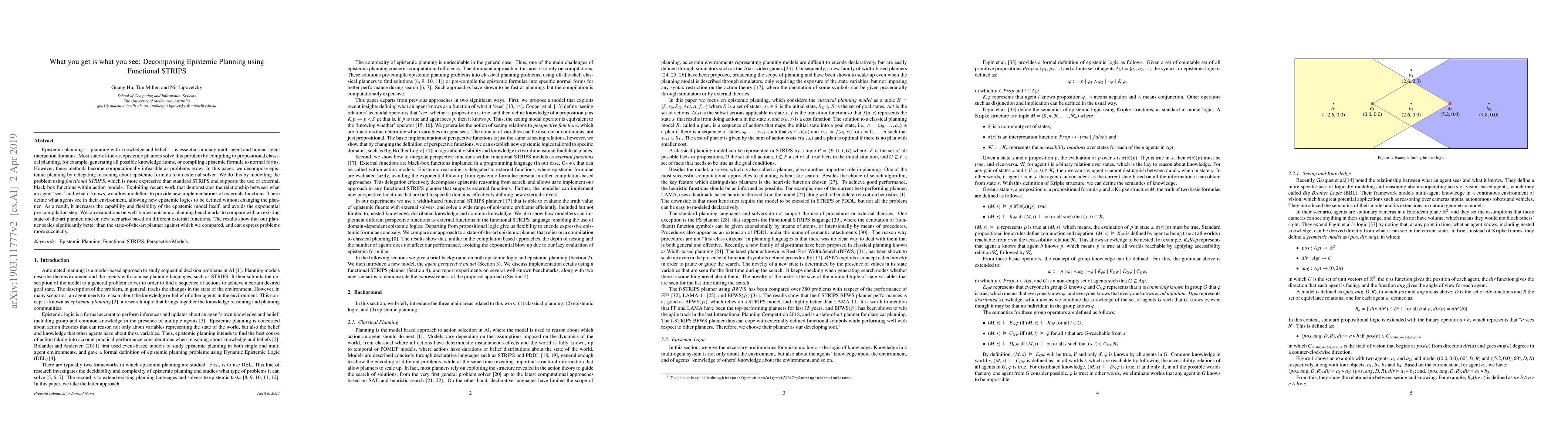 A new epistemic planning approach uses functional STRIPS to decompose reasoning about knowledge into external solver calls, allowing for scalability and flexibility in planning with knowledge and belief.