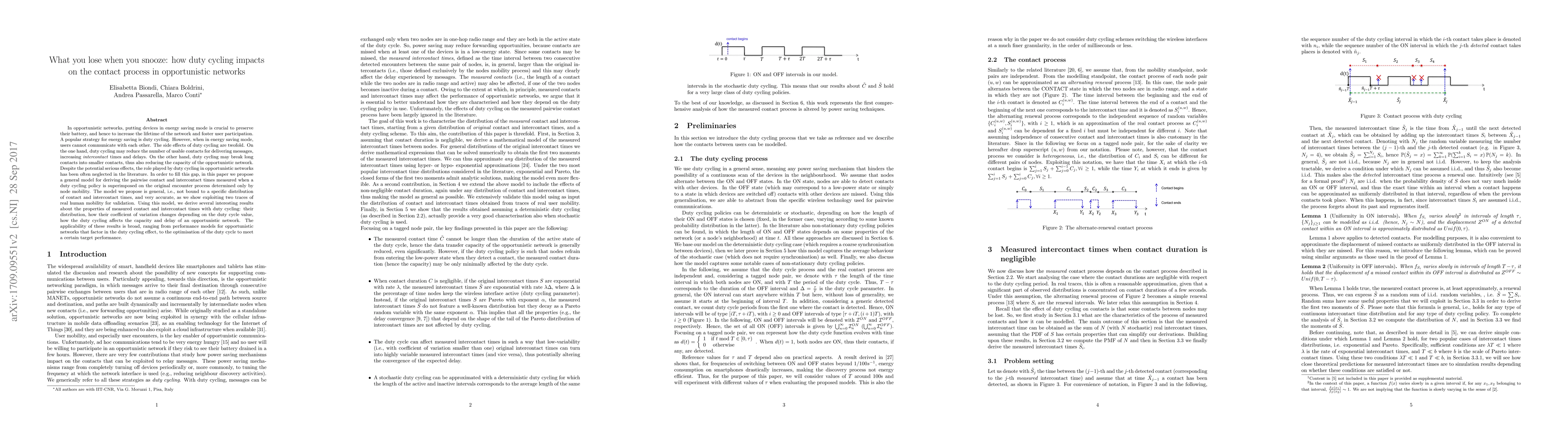 This paper investigates the impact of duty cycling on the contact process in opportunistic networks, proposing a general model to derive pairwise contact and intercontact times under energy-saving strategies. It reveals how duty cycling increases intercontact times and delays, and reduces network capacity, providing insights for performance modeling and duty cycle optimization.