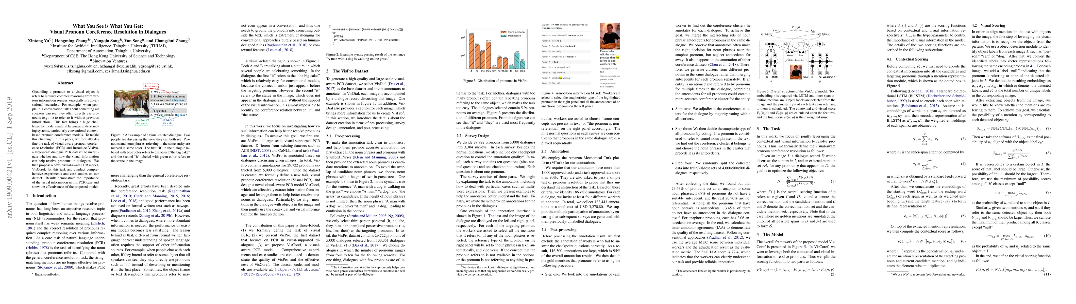 This paper introduces VisPro, a large-scale dataset for visual-aware pronoun coreference resolution in dialogues, and proposes VisCoref, a model leveraging visual information to resolve pronouns. Experiments show the model's effectiveness in resolving pronouns by utilizing visual context, highlighting the importance of visual data in natural language understanding.