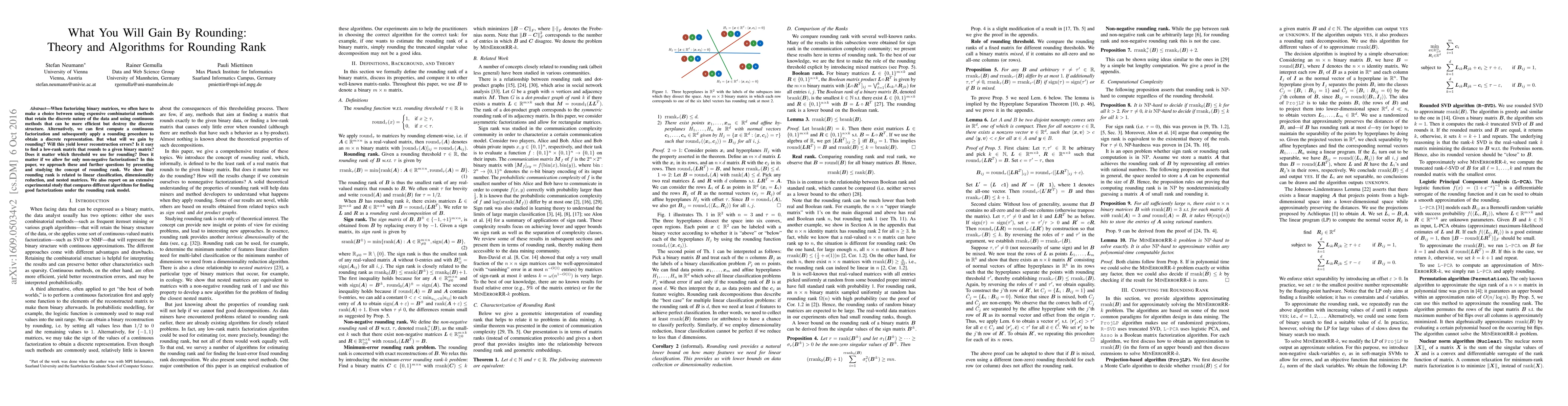 Researchers explore how rounding rank affects factorization in binary matrices, finding it relates to linear classification and dimensionality reduction, and proposing algorithms for efficient factorizations.