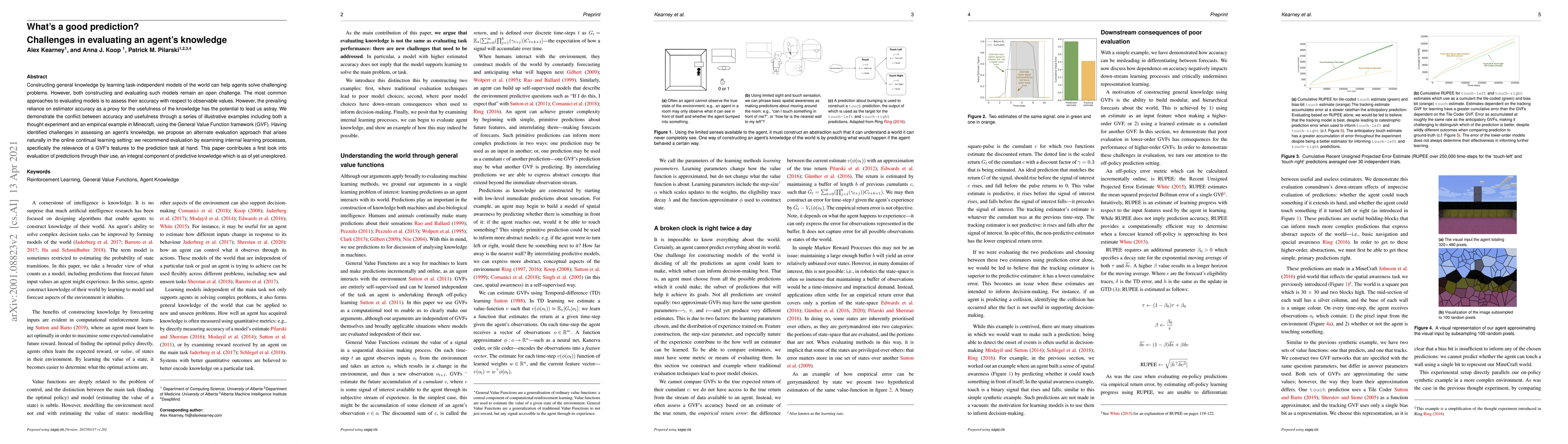 Constructing general knowledge by learning task-independent models of the world can help agents solve challenging problems. However, both constructing and evaluating such models remains an open challenge. The most common approaches to evaluating models is to assess their accuracy with respect to observable values. However, the prevailing reliance on estimator accuracy as a proxy for the usefulness of the knowledge has the potential to lead us astray. We demonstrate the conflict between accuracy and usefulness through a series of illustrative examples including both a thought experiment and empirical example in MineCraft, using the General Value Function framework (GVF). Having identified challenges in assessing an agent's knowledge, we propose an alternate evaluation approach that arises continually in the online continual learning setting we recommend evaluation by examining internal learning processes, specifically the relevance of a GVF's features to the prediction task at hand. This paper contributes a first look into evaluation of predictions through their use, an integral component of predictive knowledge which is as of yet unexplored.